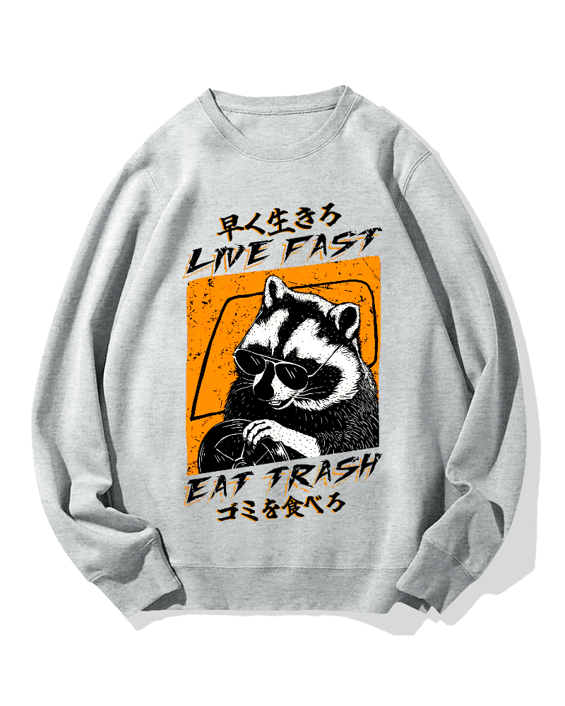 Raccoon Live Fast Eat Trash Cotton Sweatshirt