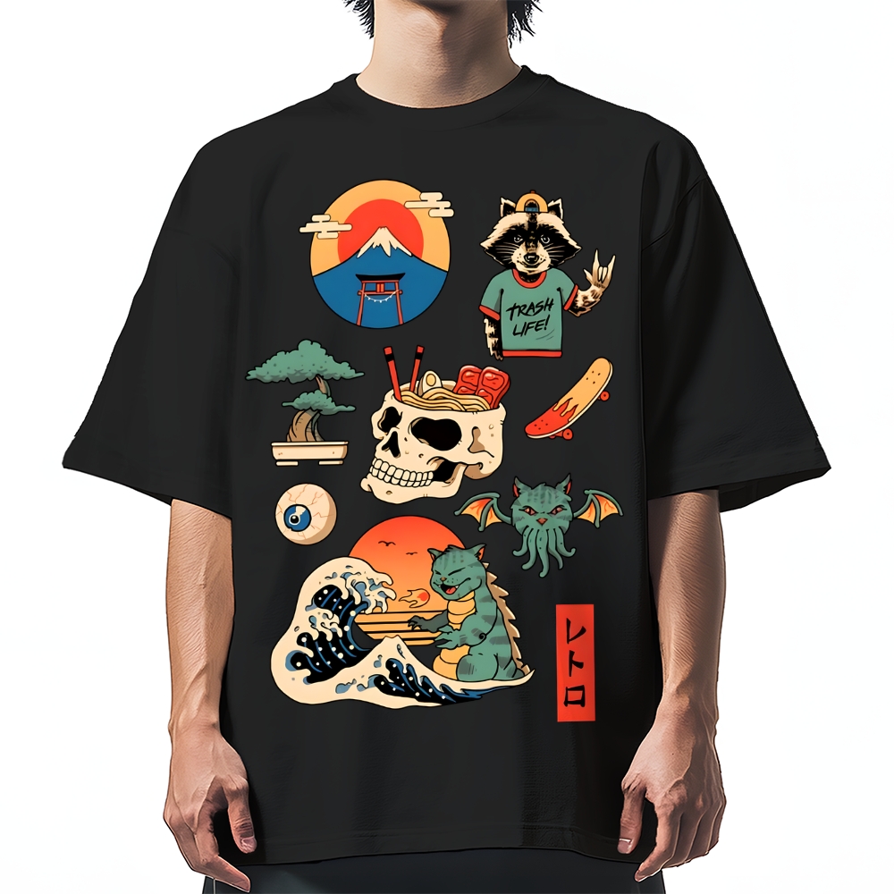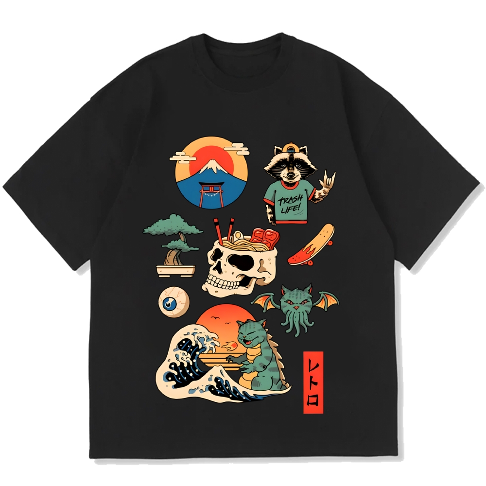 Mysterious Black Frog Japanese Style Cotton casual T-shirt