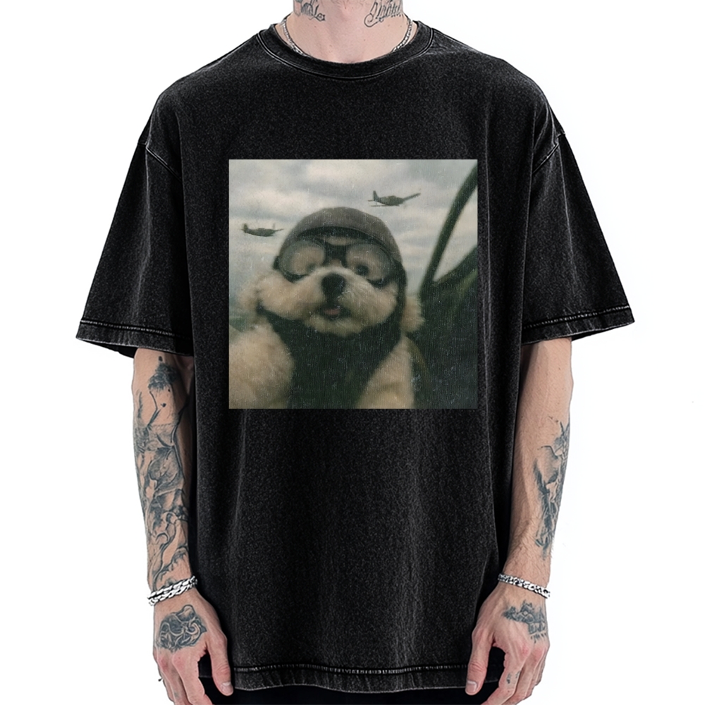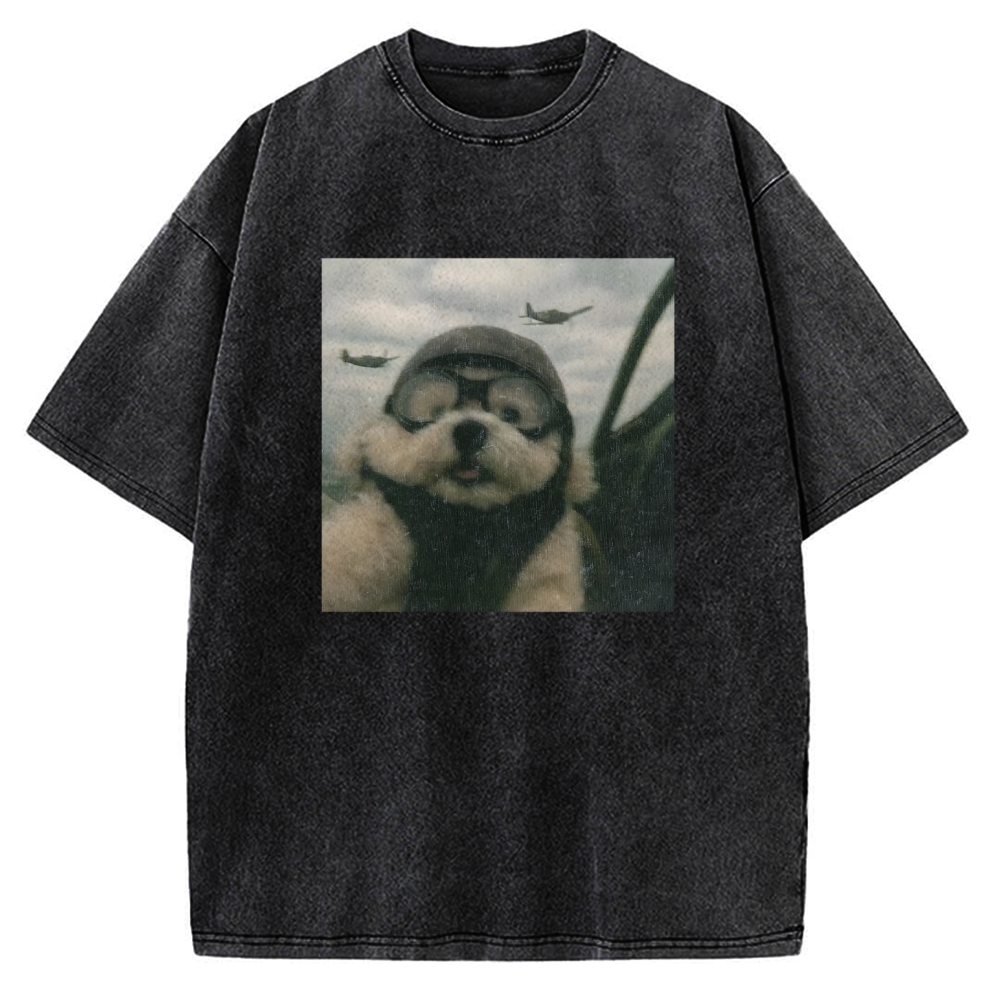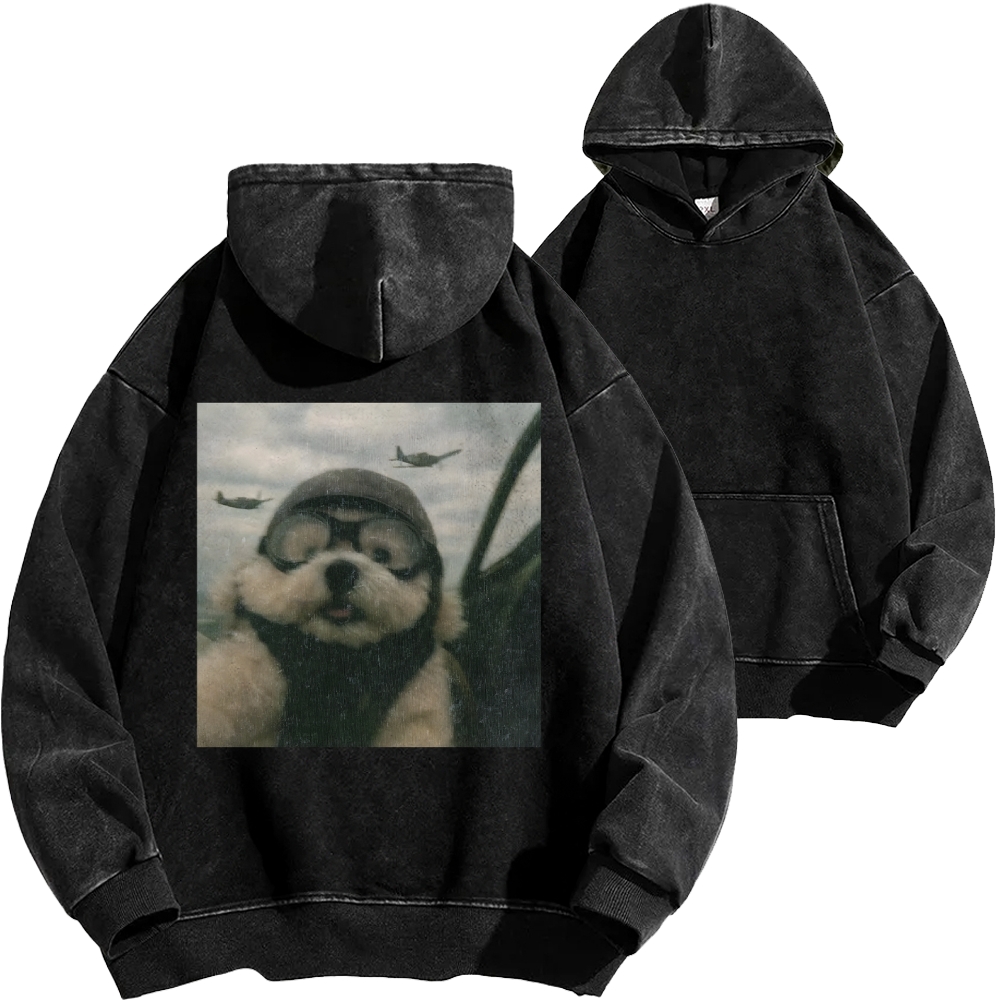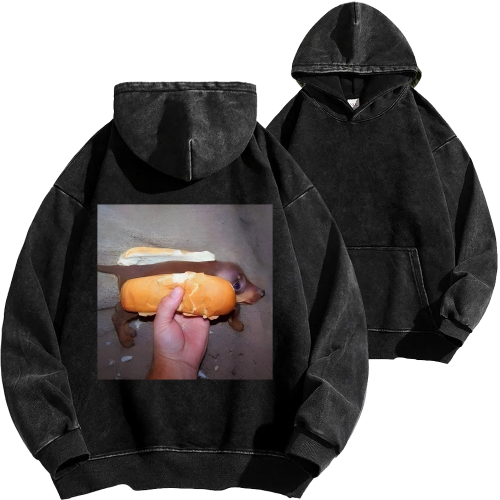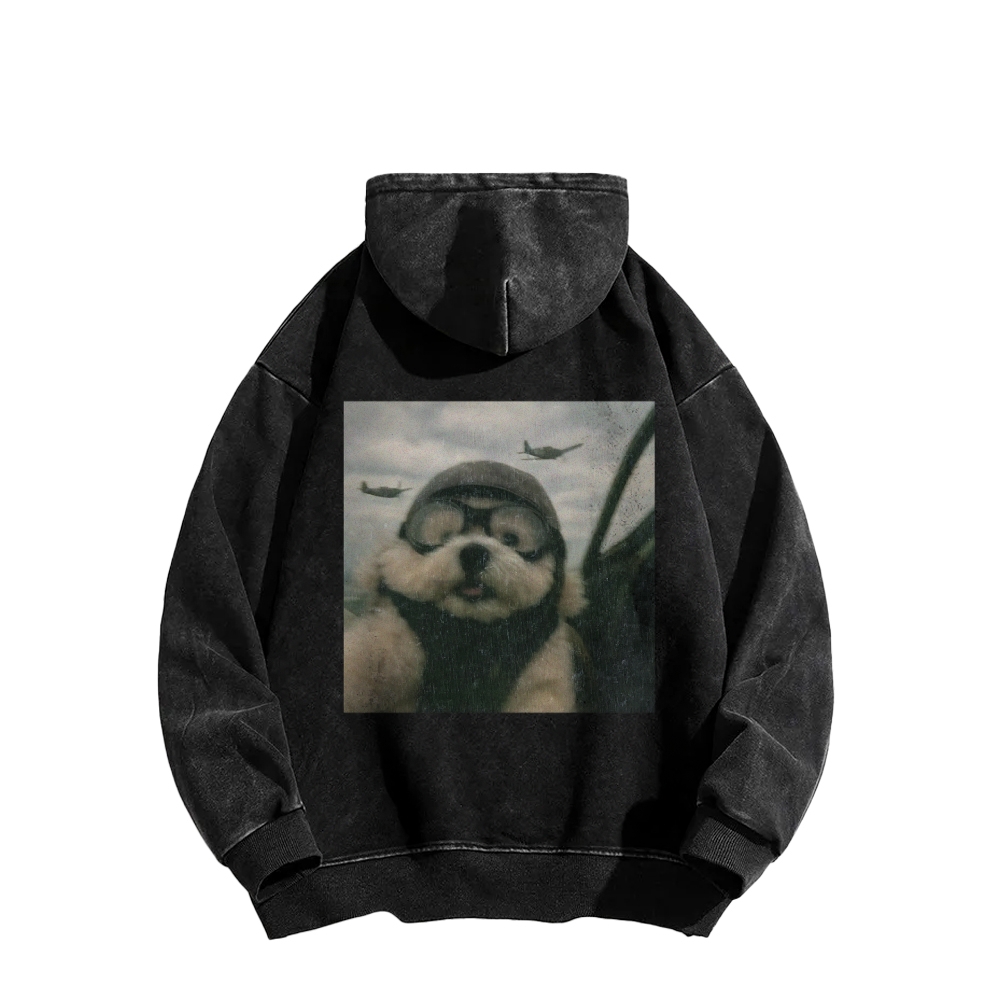 Funny Dog Meme Back-printed Vintage Washed Hoodie