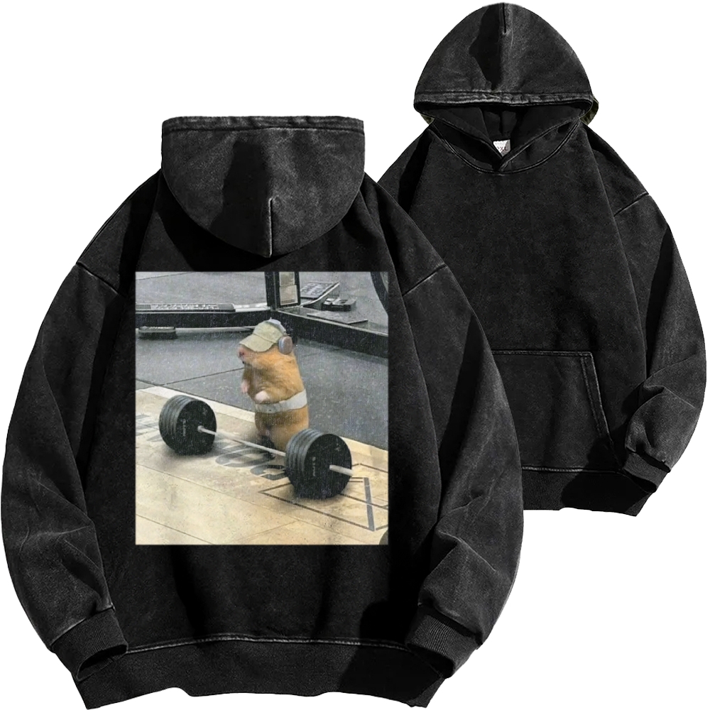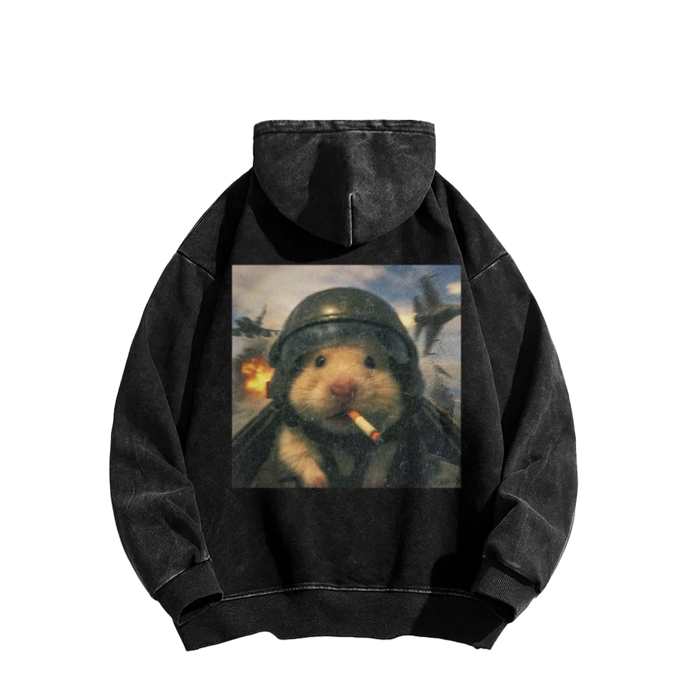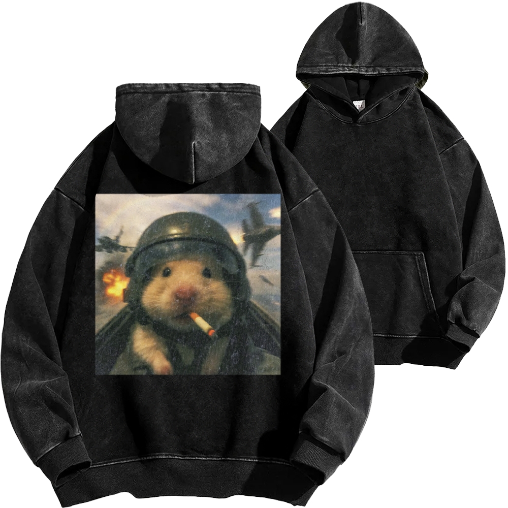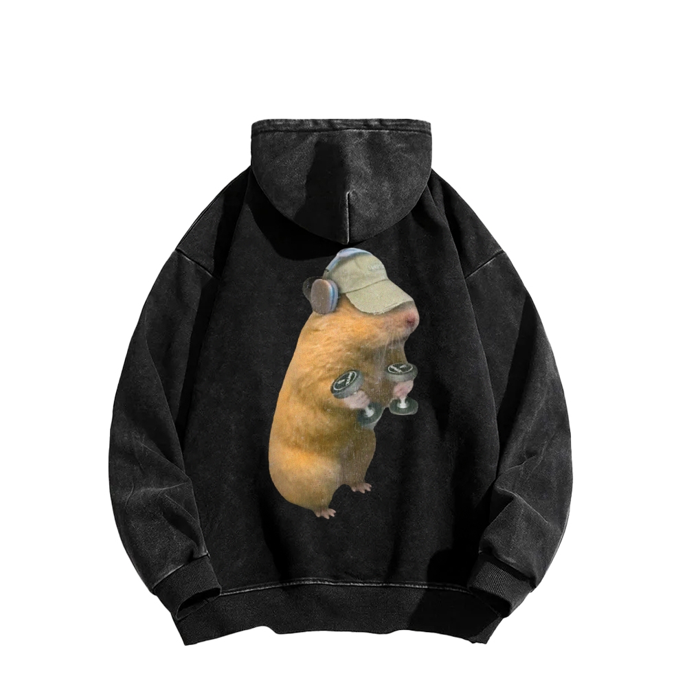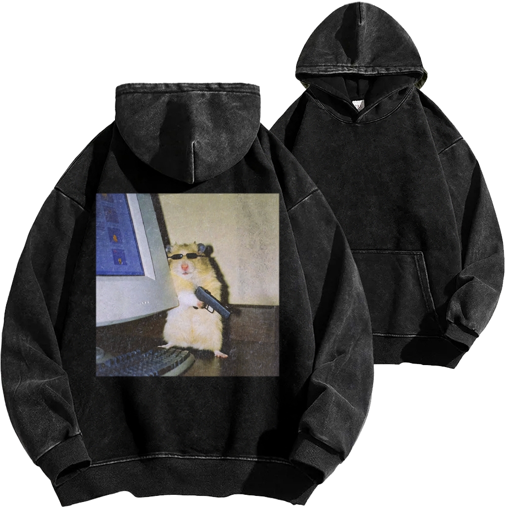 Wacky Hamster Front And Back Printing Vintage Washed Hoodie