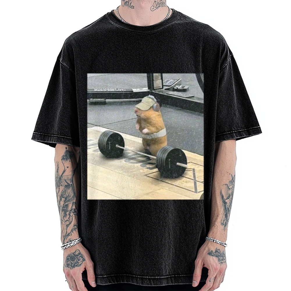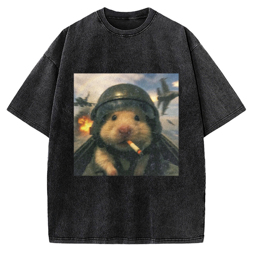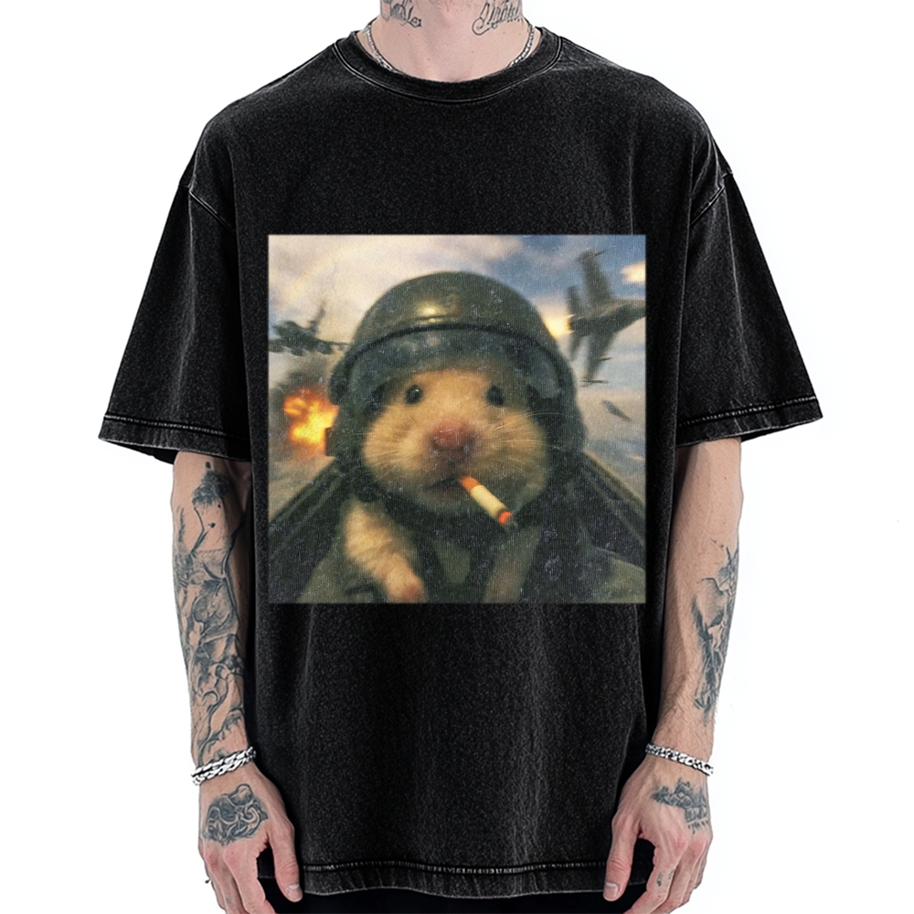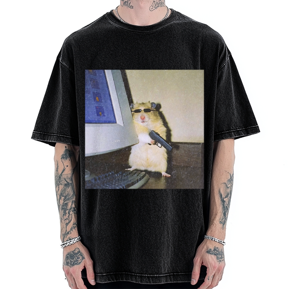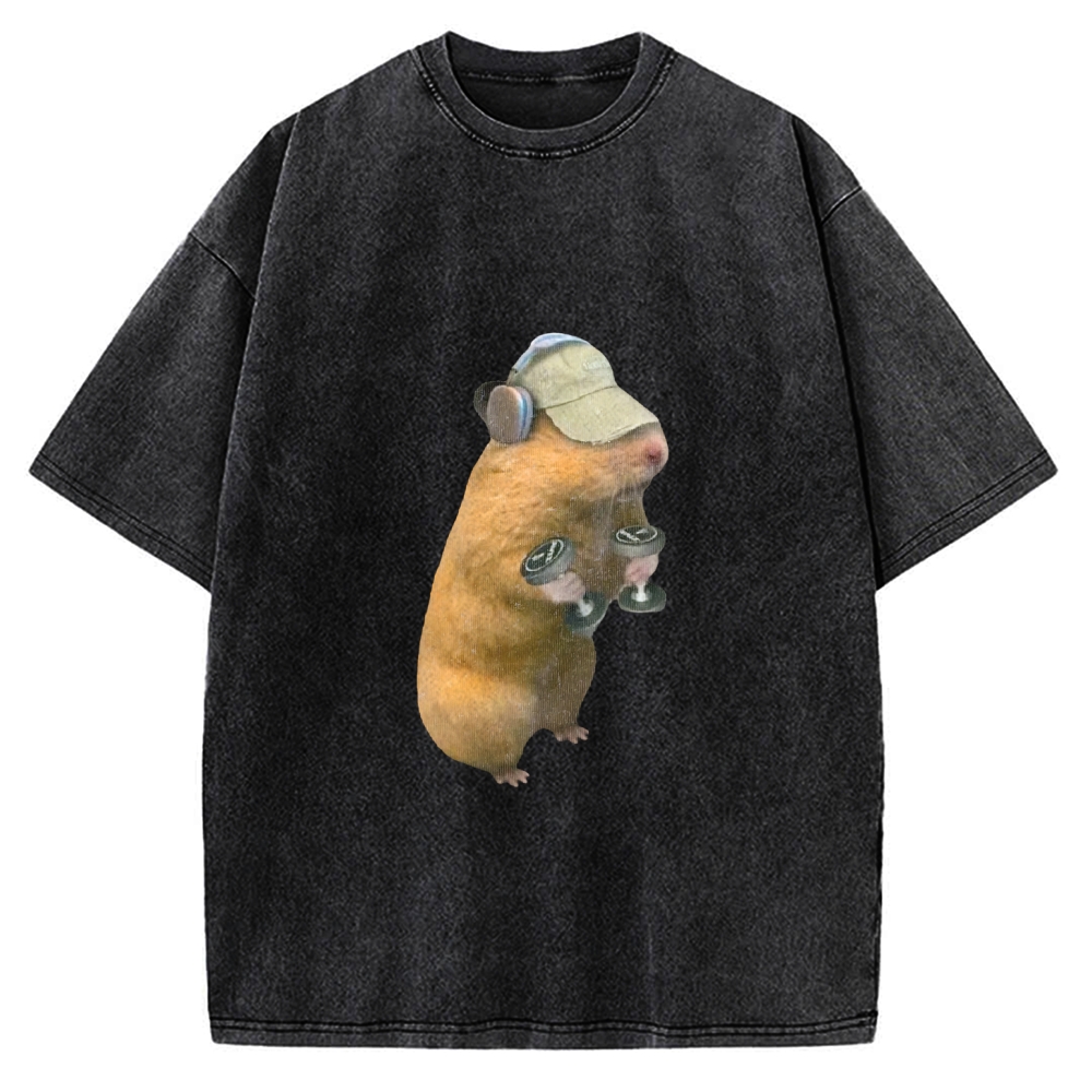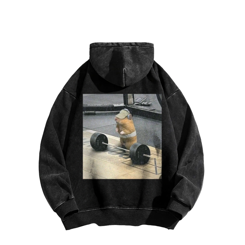 Wacky Hamster Front And Back Printing Vintage Washed Hoodie
