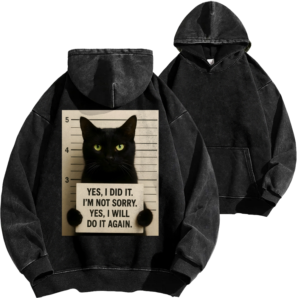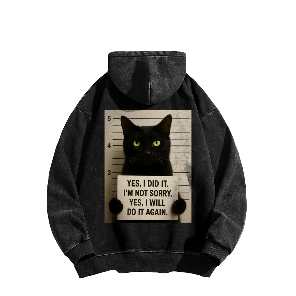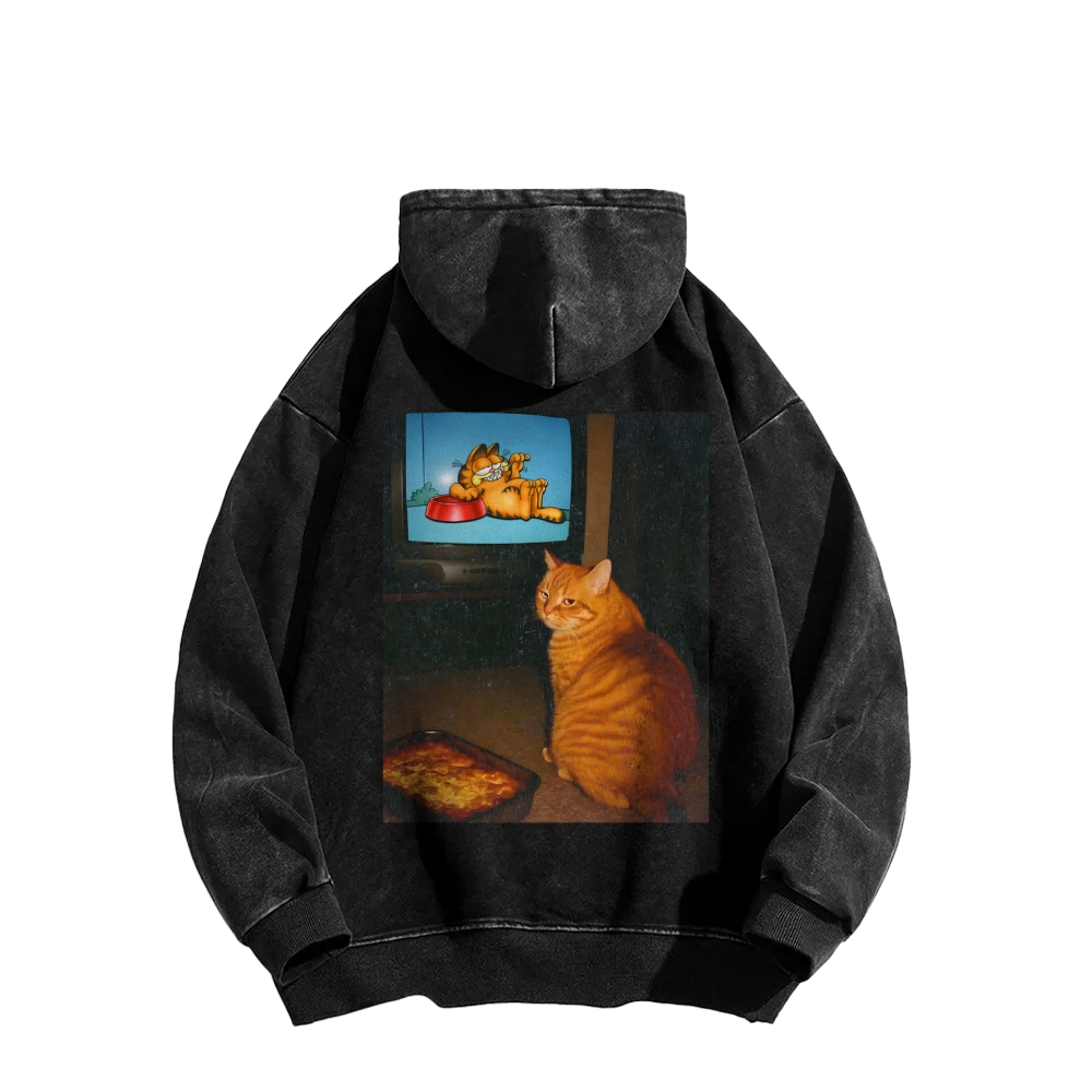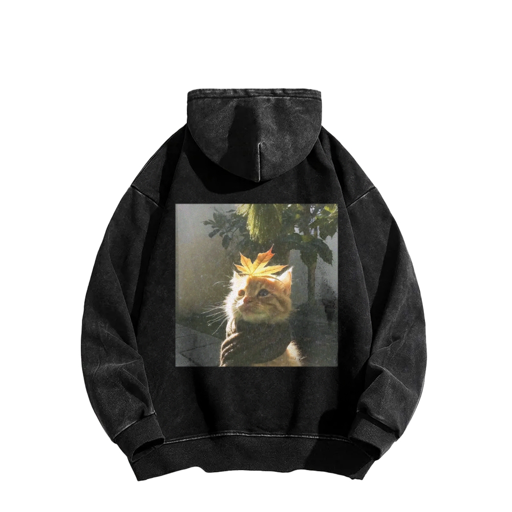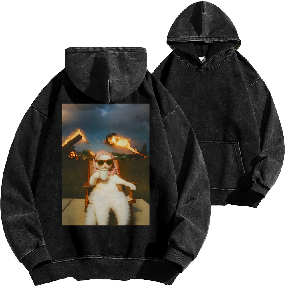 Funny Cat Meme Back-printed Vintage Washed Hoodie