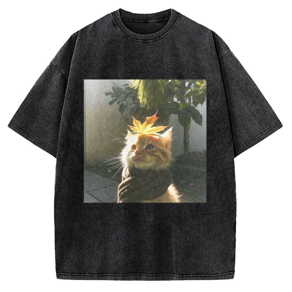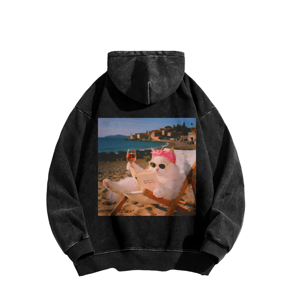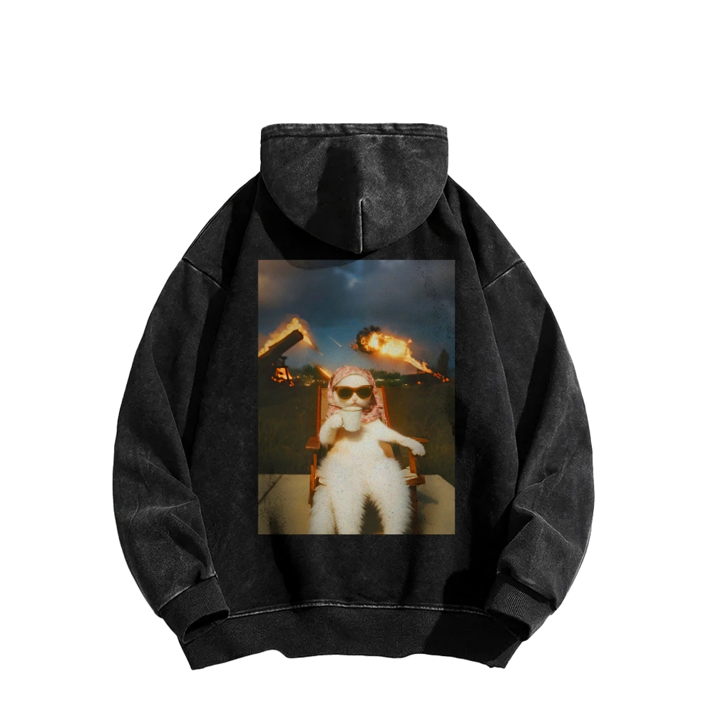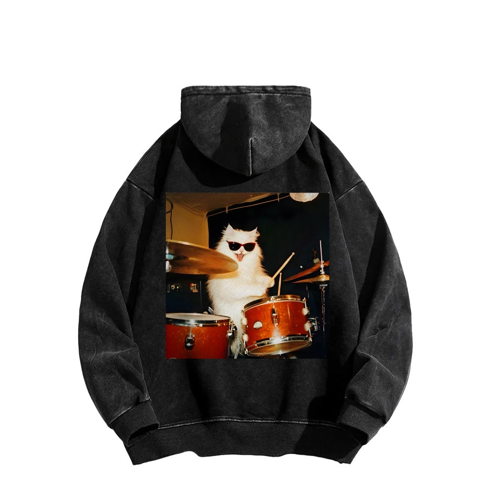Funny Cat Meme Back-printed Vintage Washed Hoodie