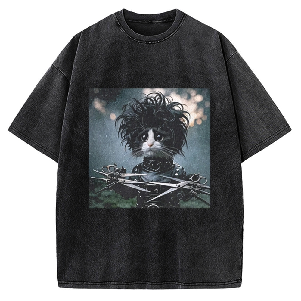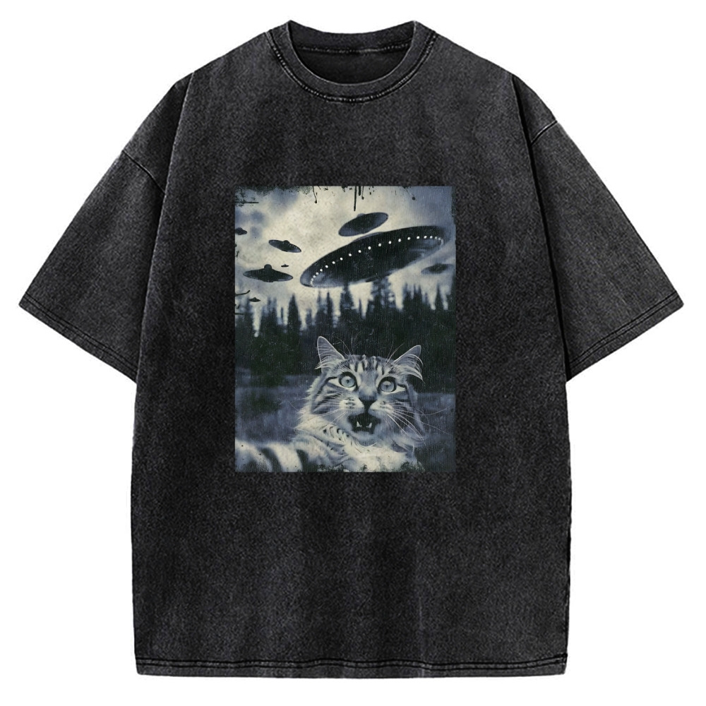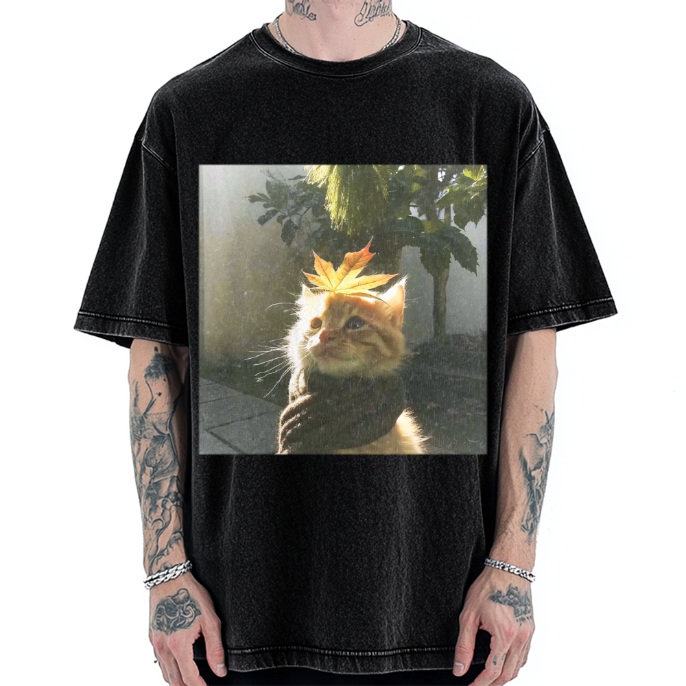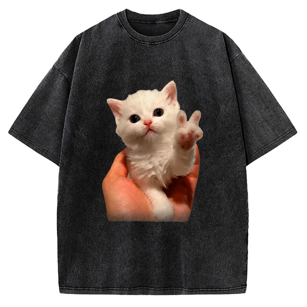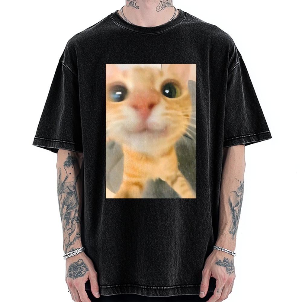 Funny Cat Meme Back-printed Vintage Washed Hoodie