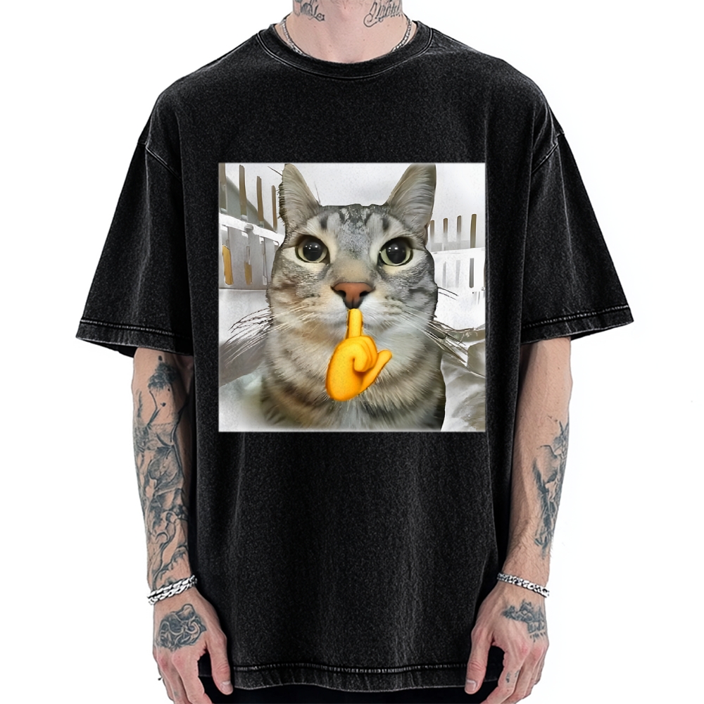 Funny Shhh Cat Meme Funny Humor Vintage Washed T-shirt