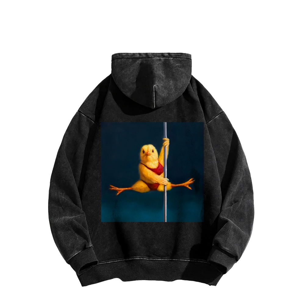Funny Chicken Meme Back-printed Vintage Washed Hoodie