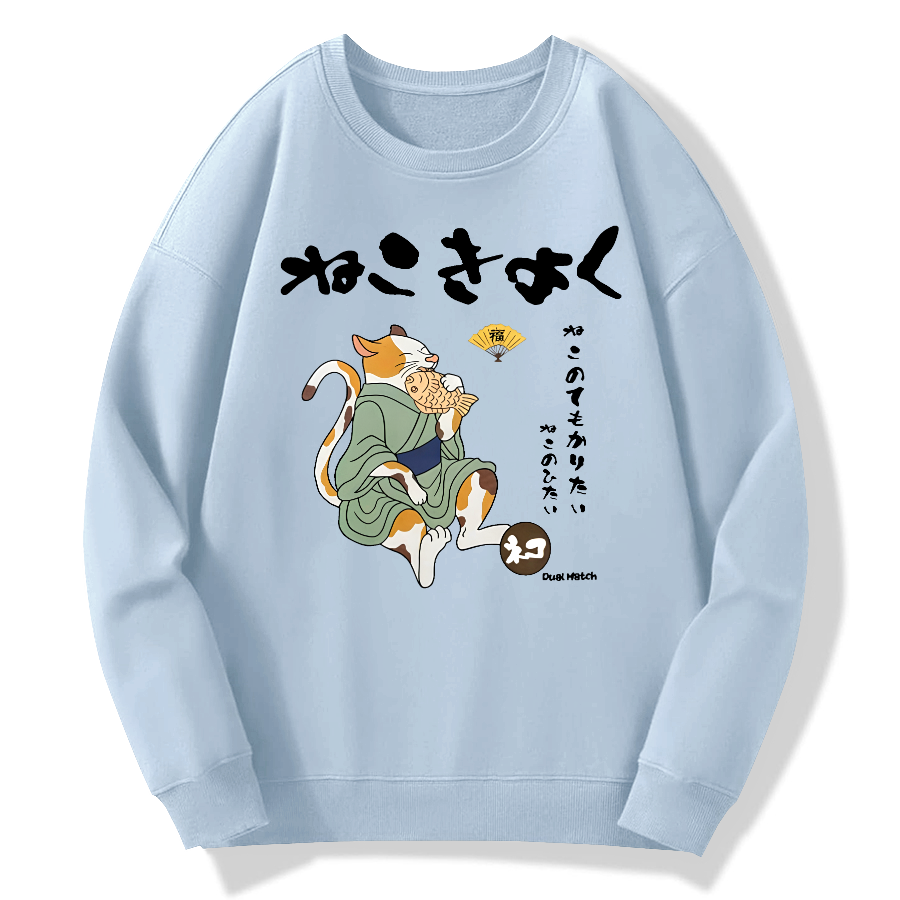 A cat cooked with sea bream Cotton Pullover Sweatshirt