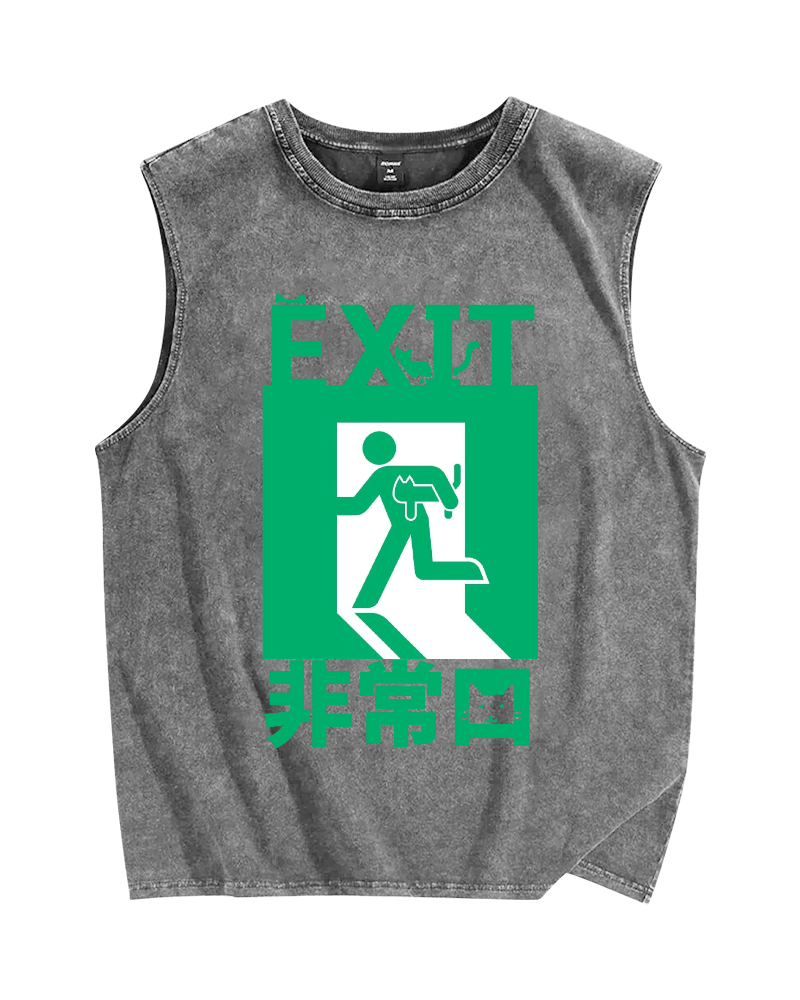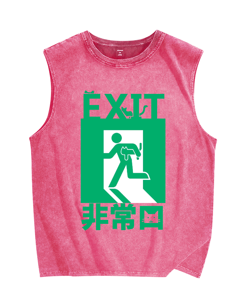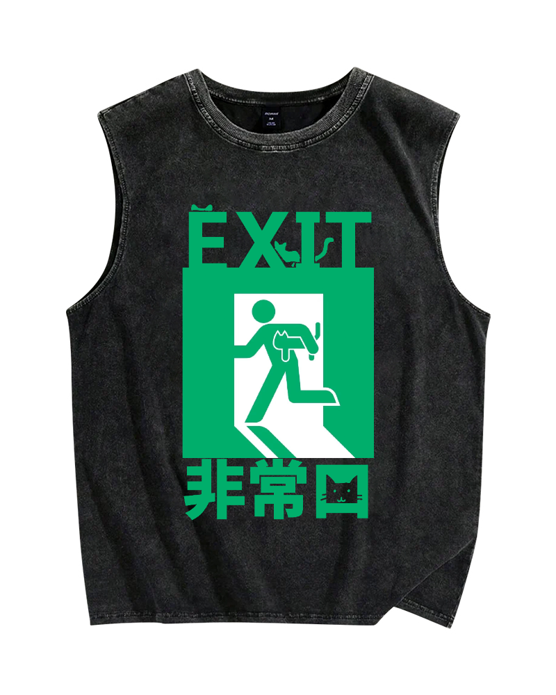 Cat Exit Vintage Distressed Washed Tank Top