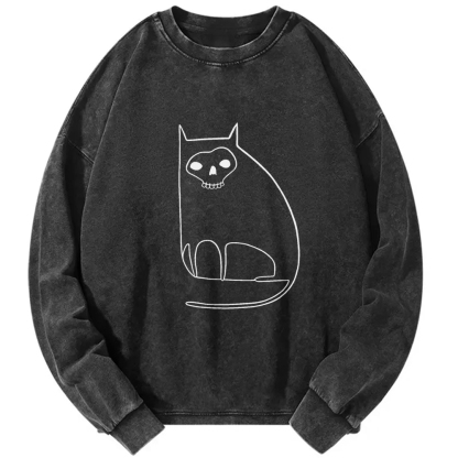 Cat Skull Vintage Washed Sweatshirts