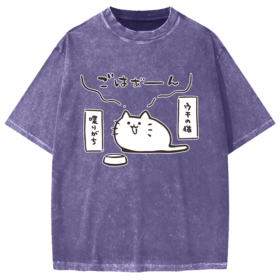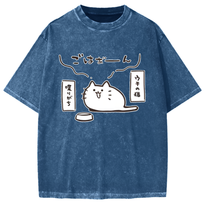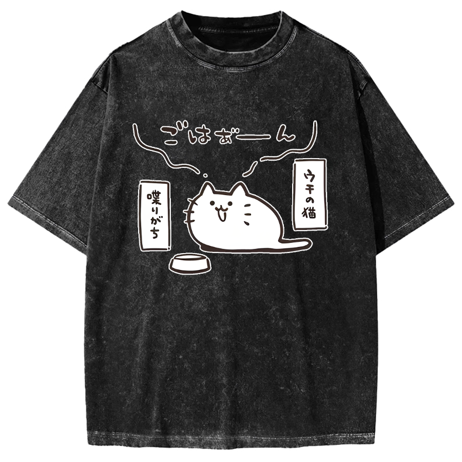 Greedy cat chattering Japanese Vintage Washed T-shirt