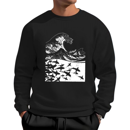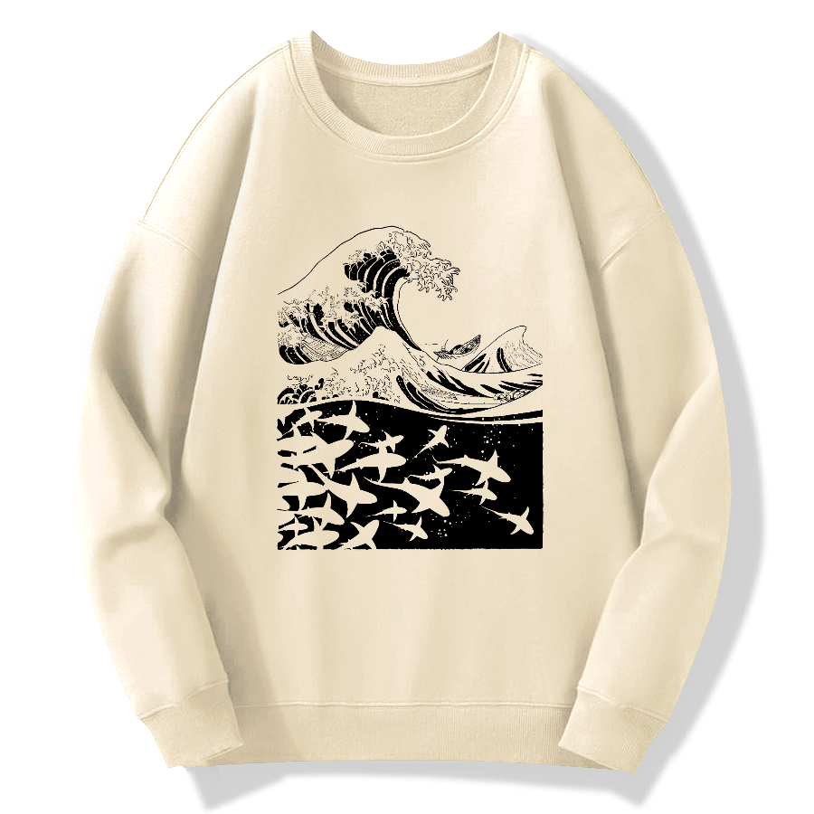 Japanese Wave Art Cotton Pullover Sweatshirt