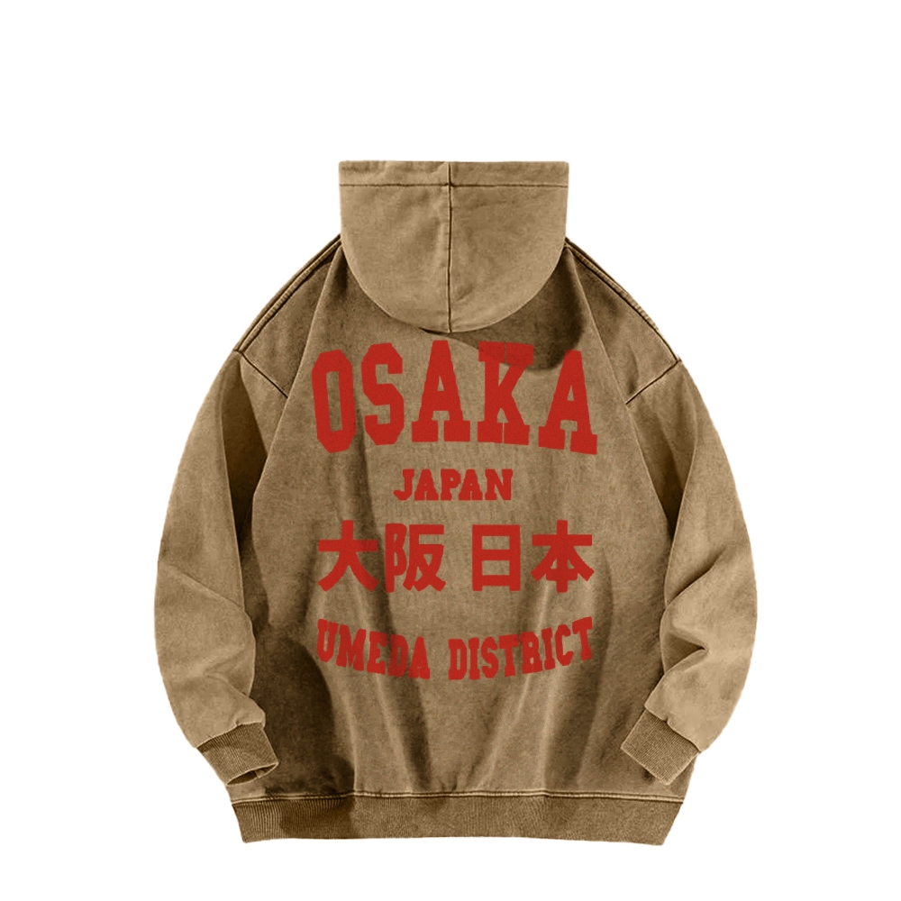 Osaka Japan Vintage Front And Back Printing Washed Hoodie
