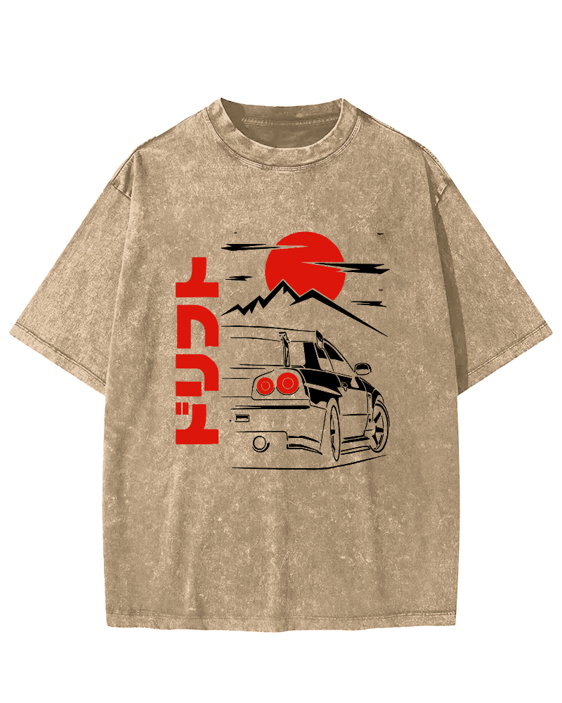 Sunrise Motorcycle Japanese Style Vintage Washed T-shirt