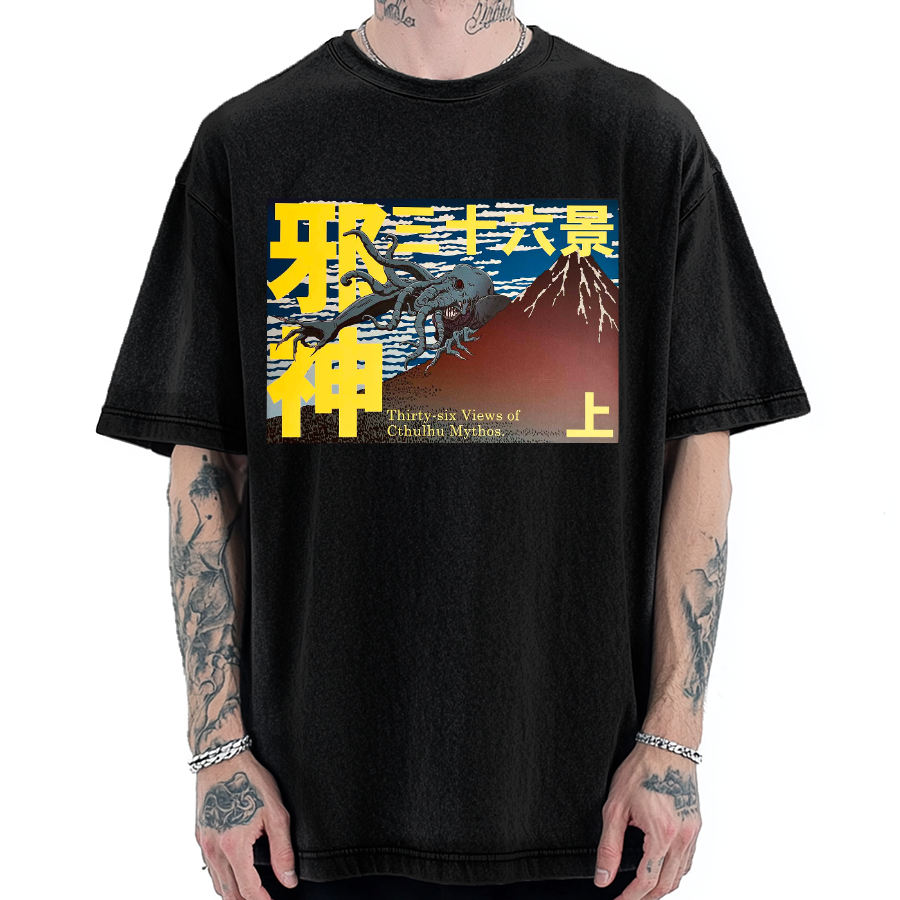 Thirty- six View of Cthulhu Mythos Japanese Painting Vintage Washed T-shirt