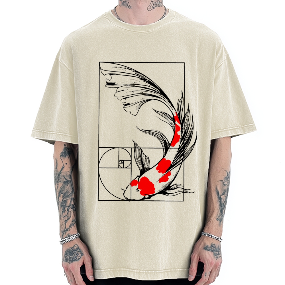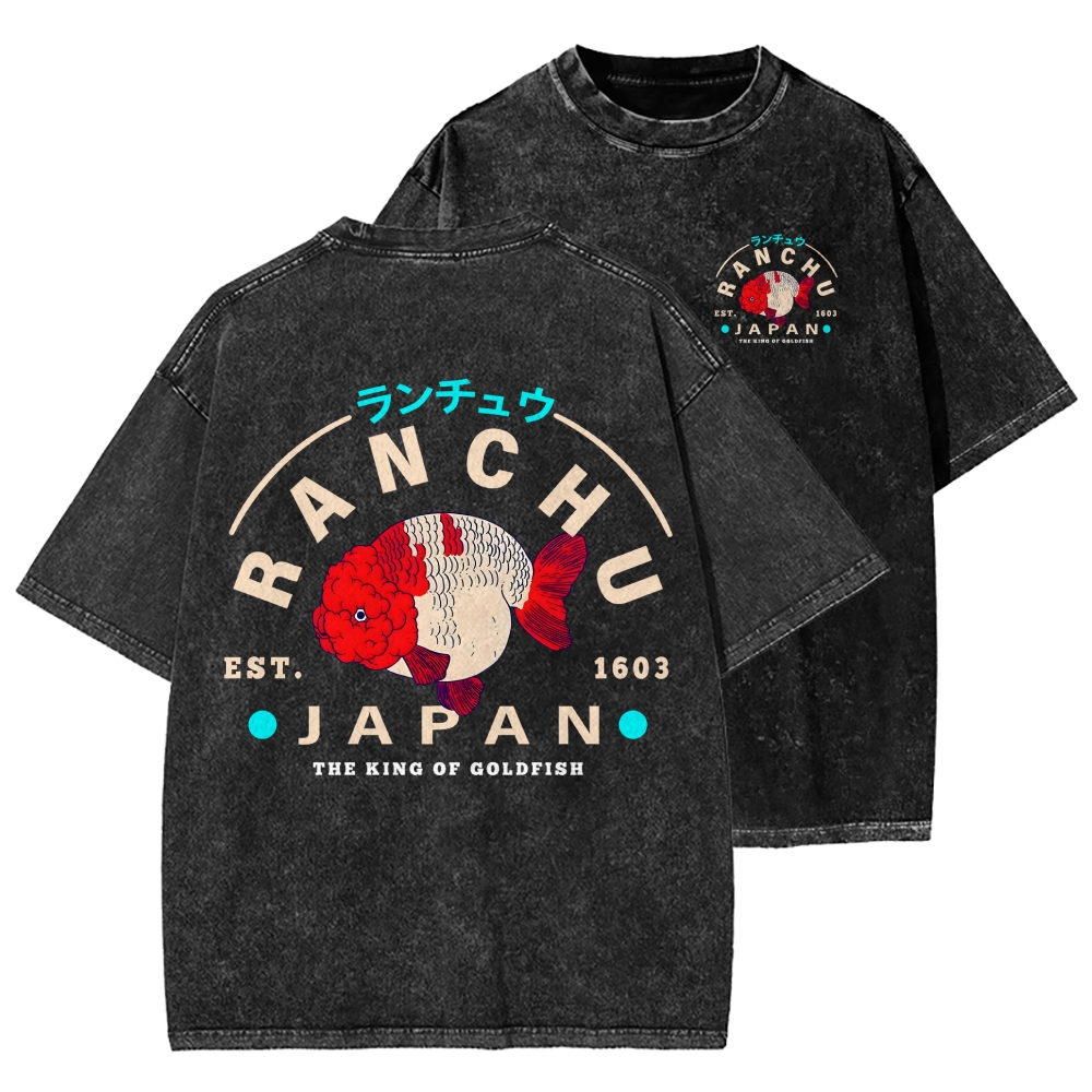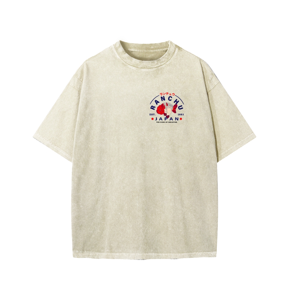 Ranchu the King of Goldfish Vintage Front And Back Printing Washed T-shirt