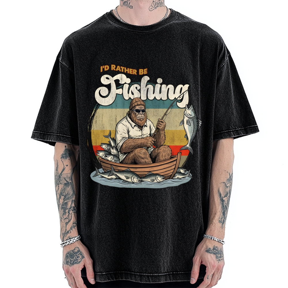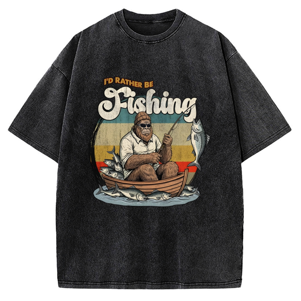 Bigfoot Fishing I'd Rather Be Fishing Vintage Washed T-shirt