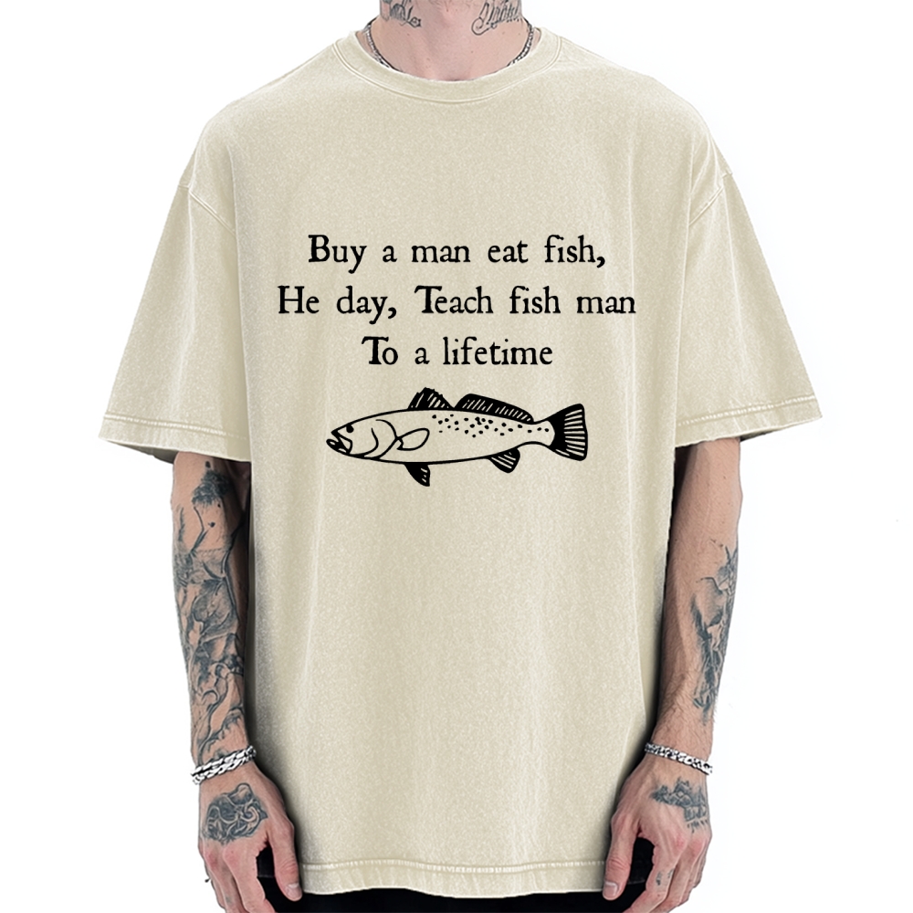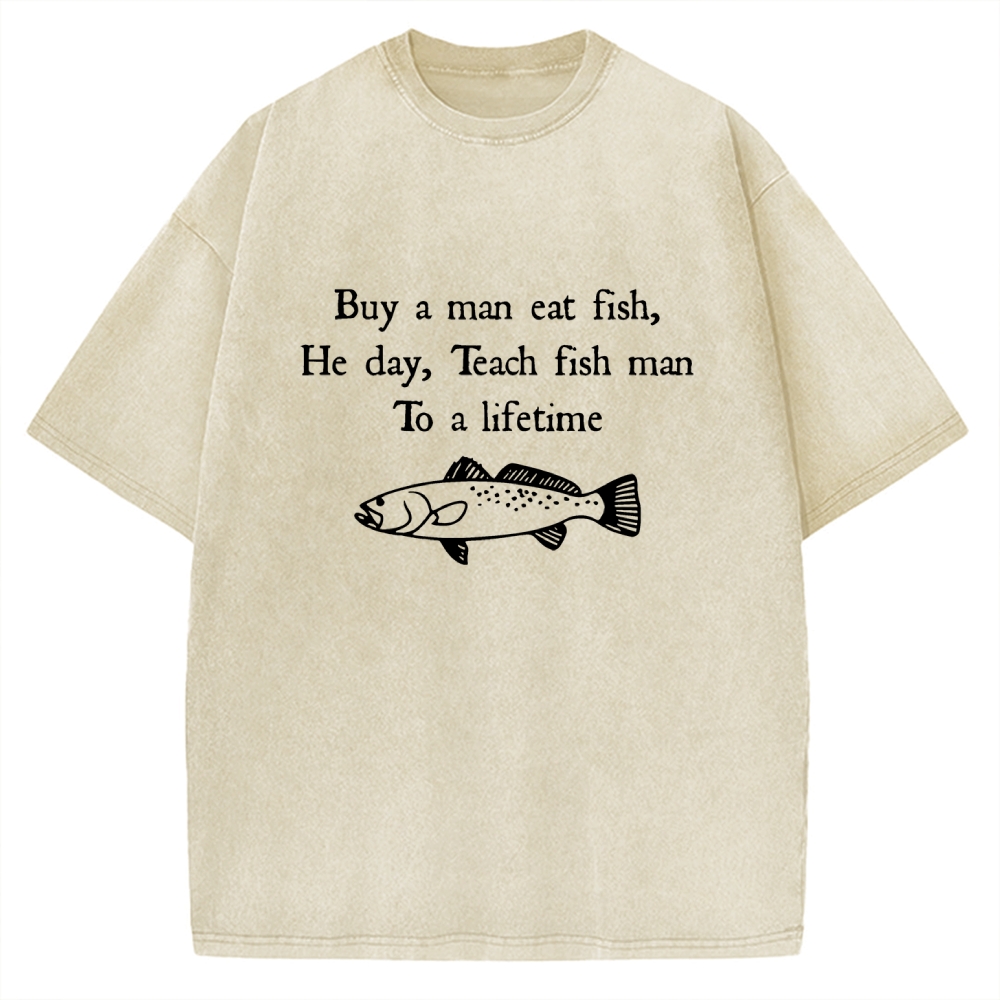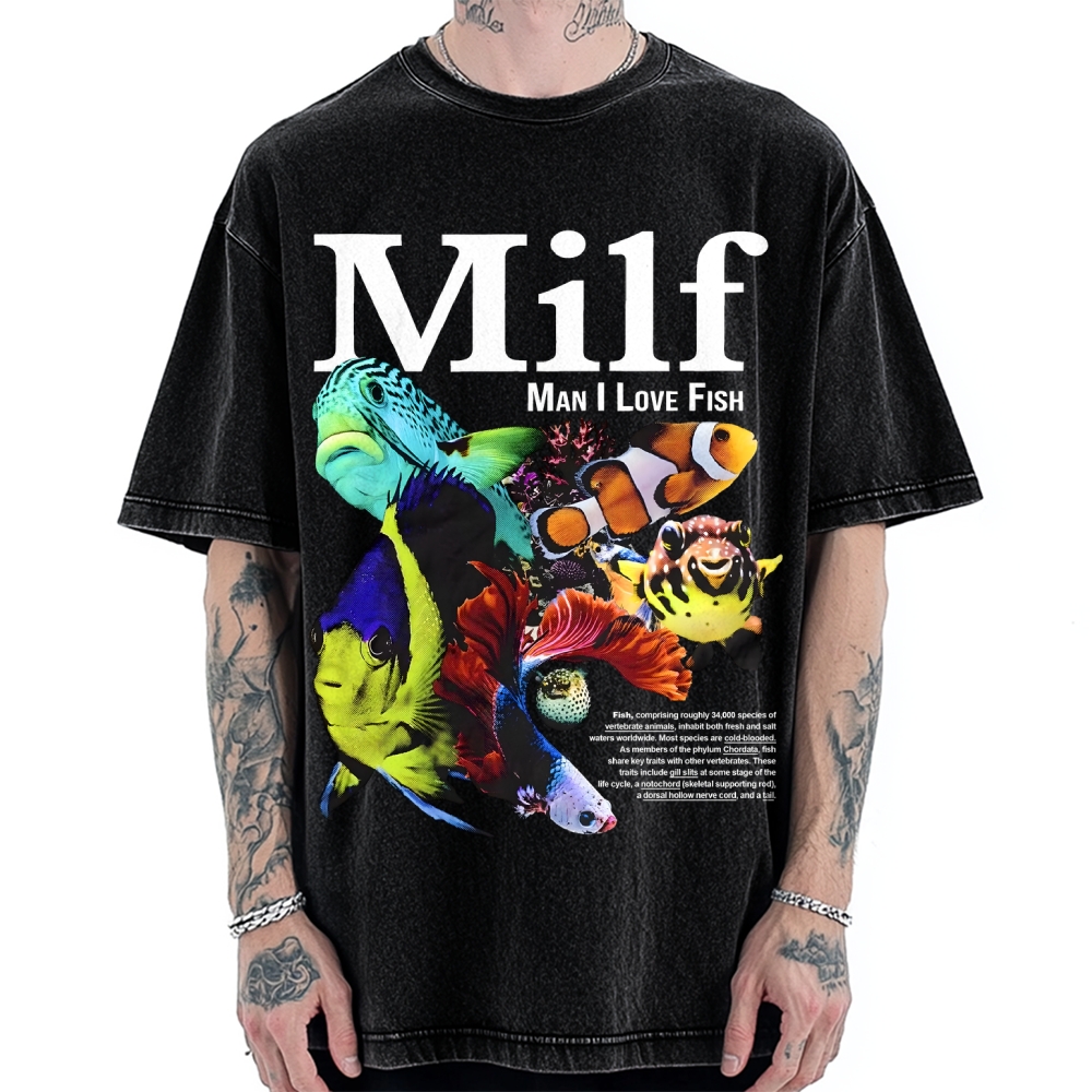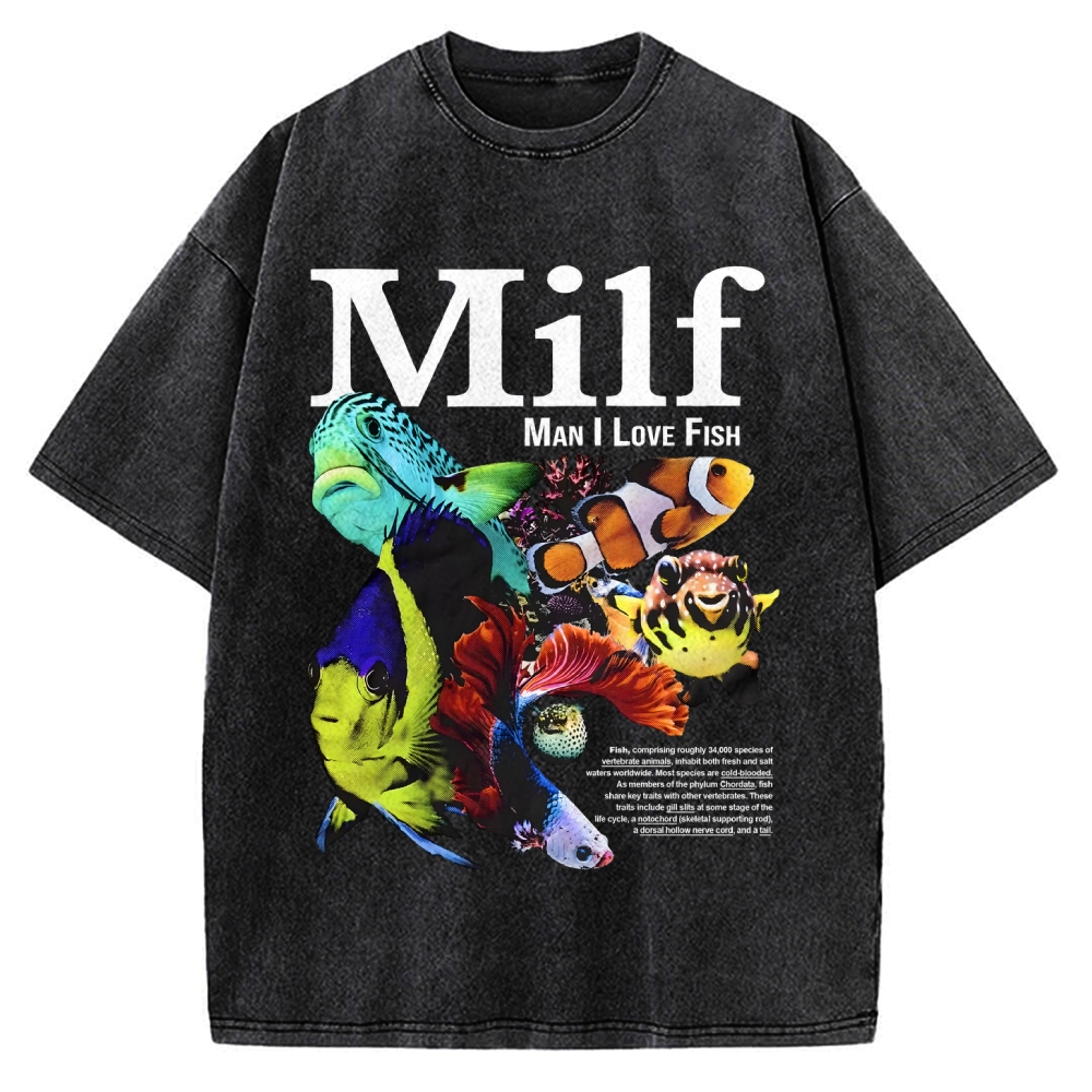 Man I Love Fish Funny Ocean Meme Vintage Washed T-shirt