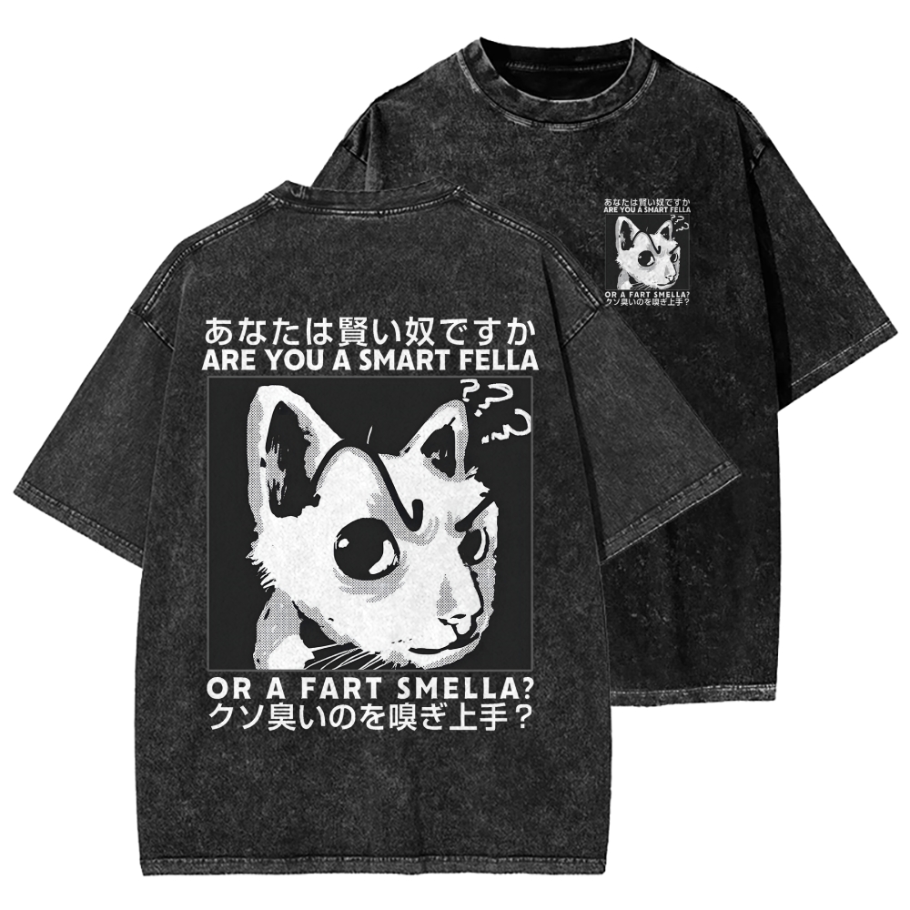 Are You A Smart Fella Or A Fart Smella? Front And Back Printing Washed T-shirt