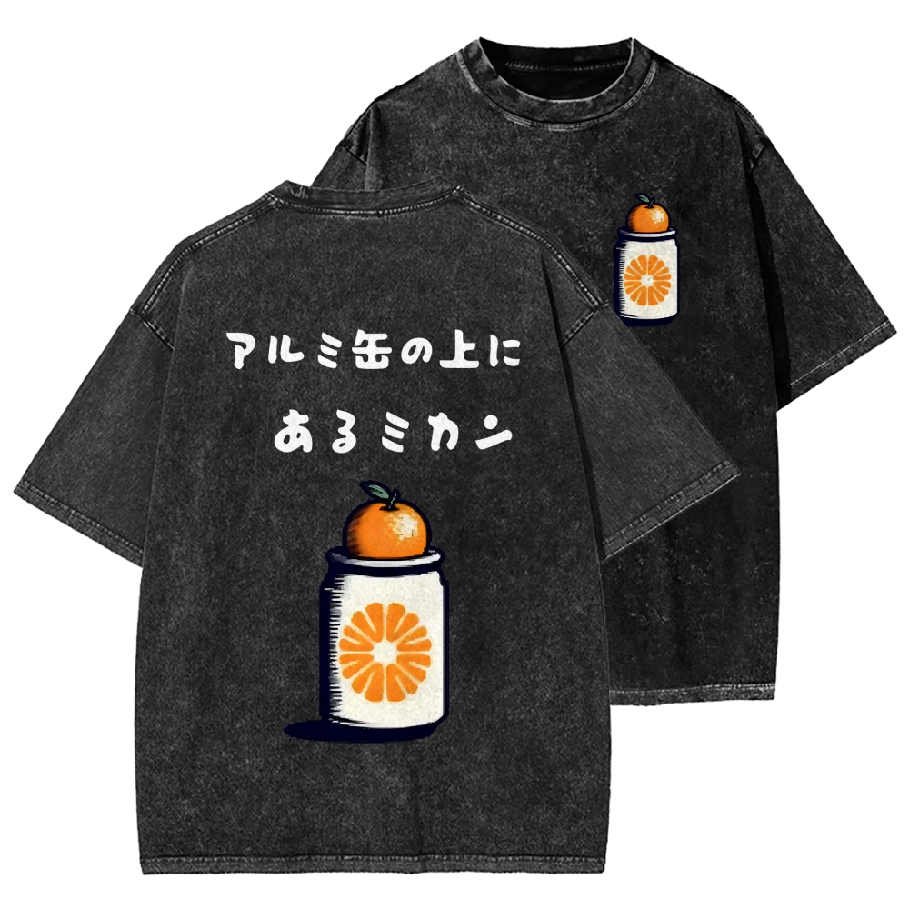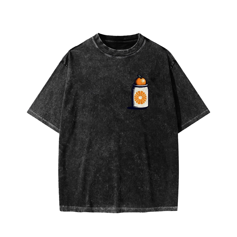 The Orange On The Aluminum Can Front And Back Printing Washed T-shirt