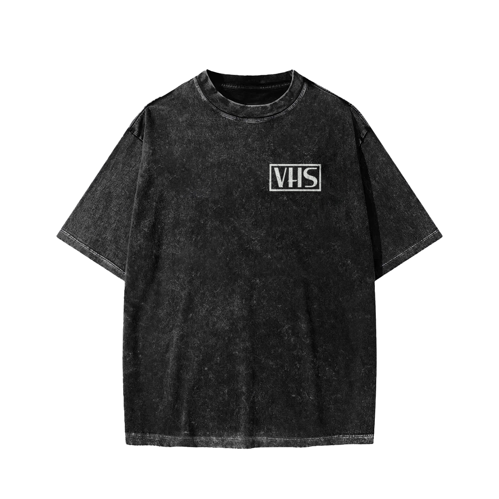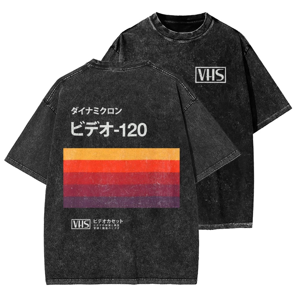 Japanese VHS Tape Retro Front And Back Printing Washed T-shirt