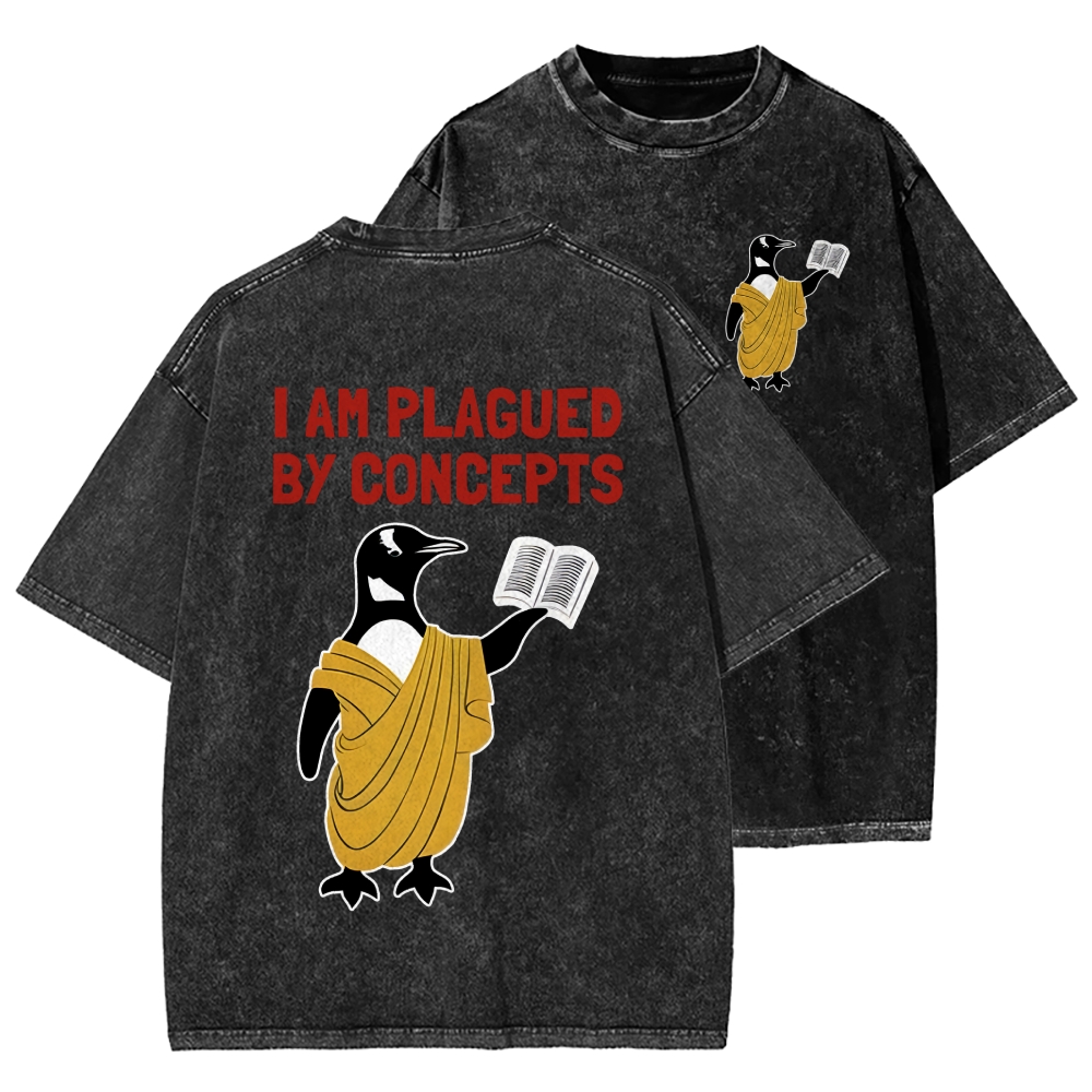 Philosophy Penguin Front And Back Printing Washed T-shirt