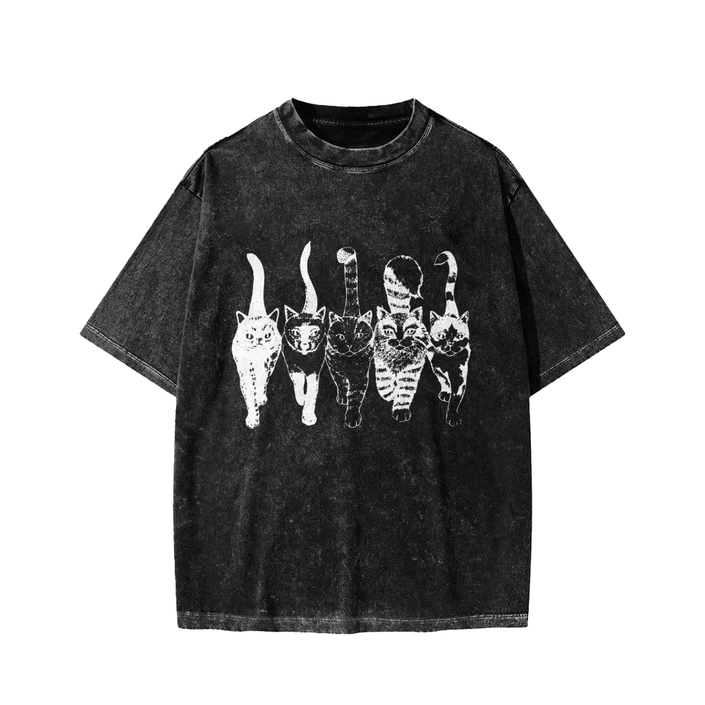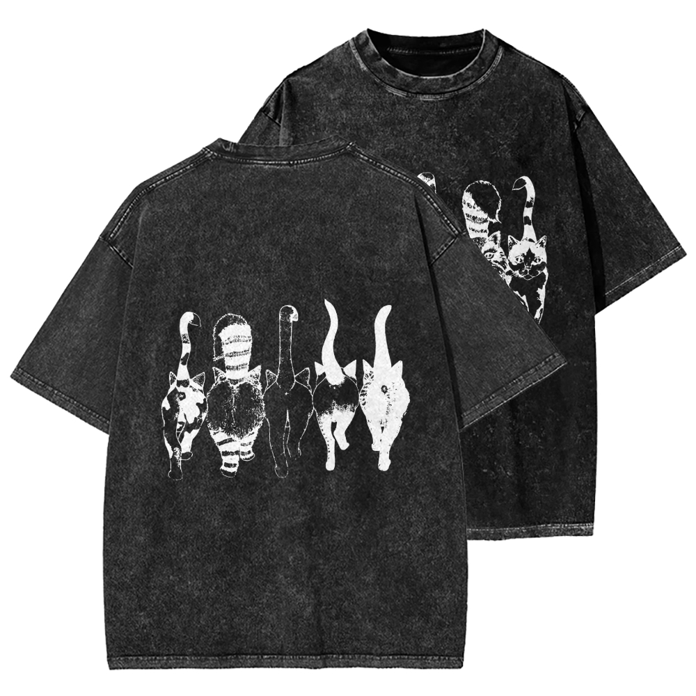 Kanagawa cat Front And Back Printing Washed T-shirt