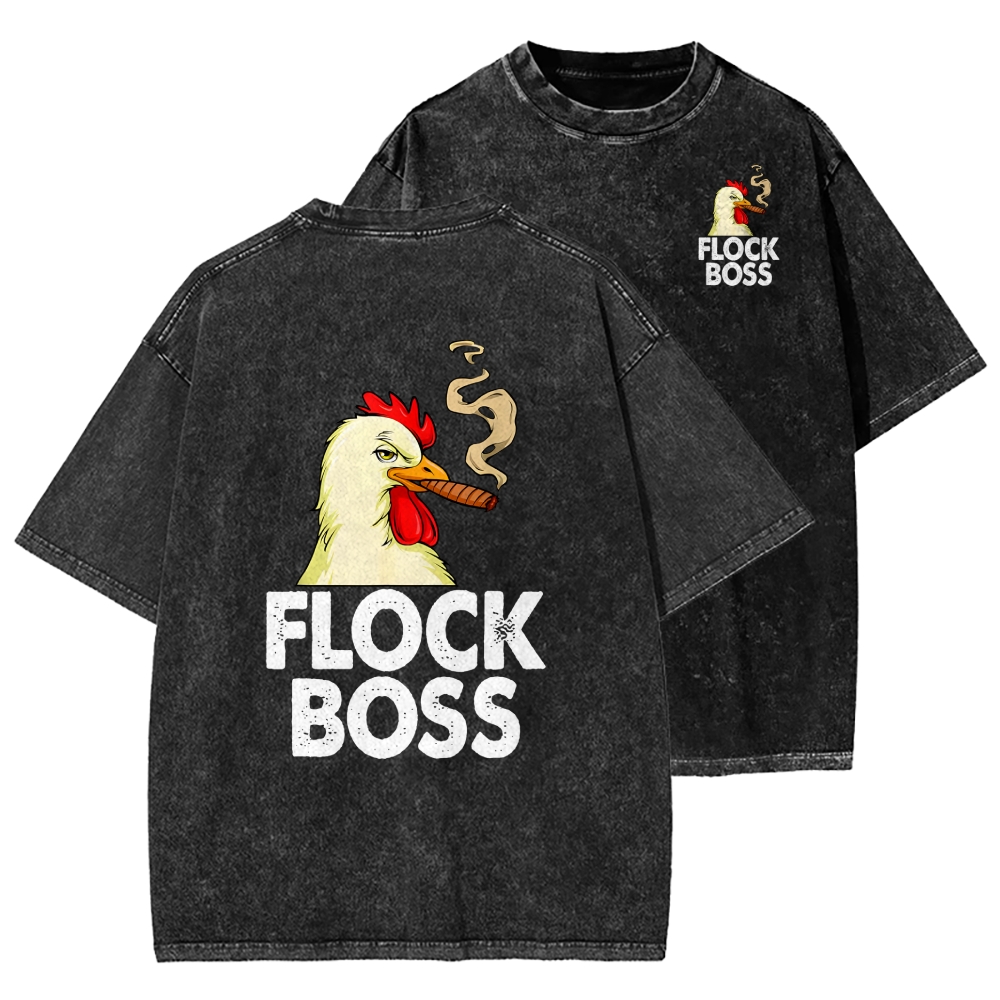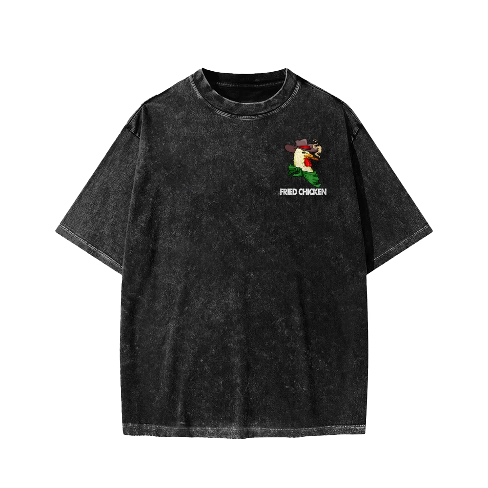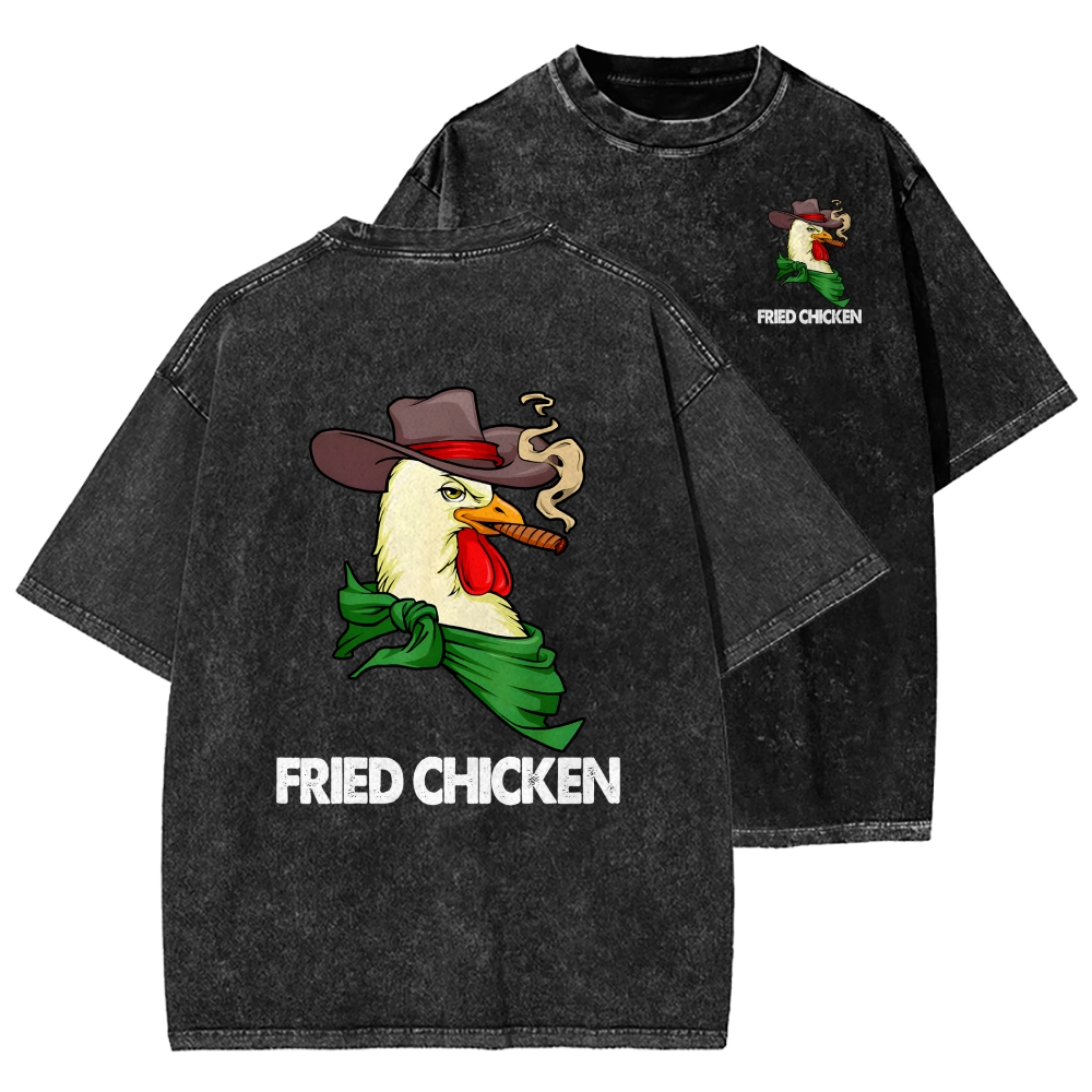 Smoking Chicken Front And Back Printing Washed T-shirt