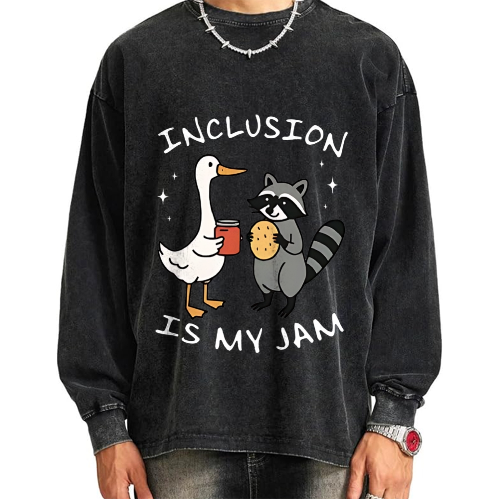 Inclusion Is My Jam Silly Goose And A Raccoon Vintage Washed Sweatshirts