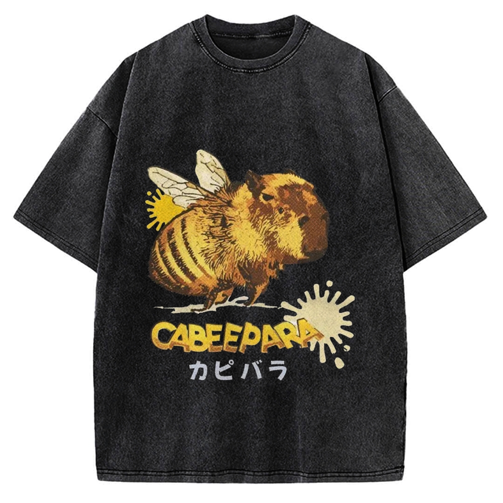 Cabeepara Funny Bee Capybara Vintage Washed T-shirt