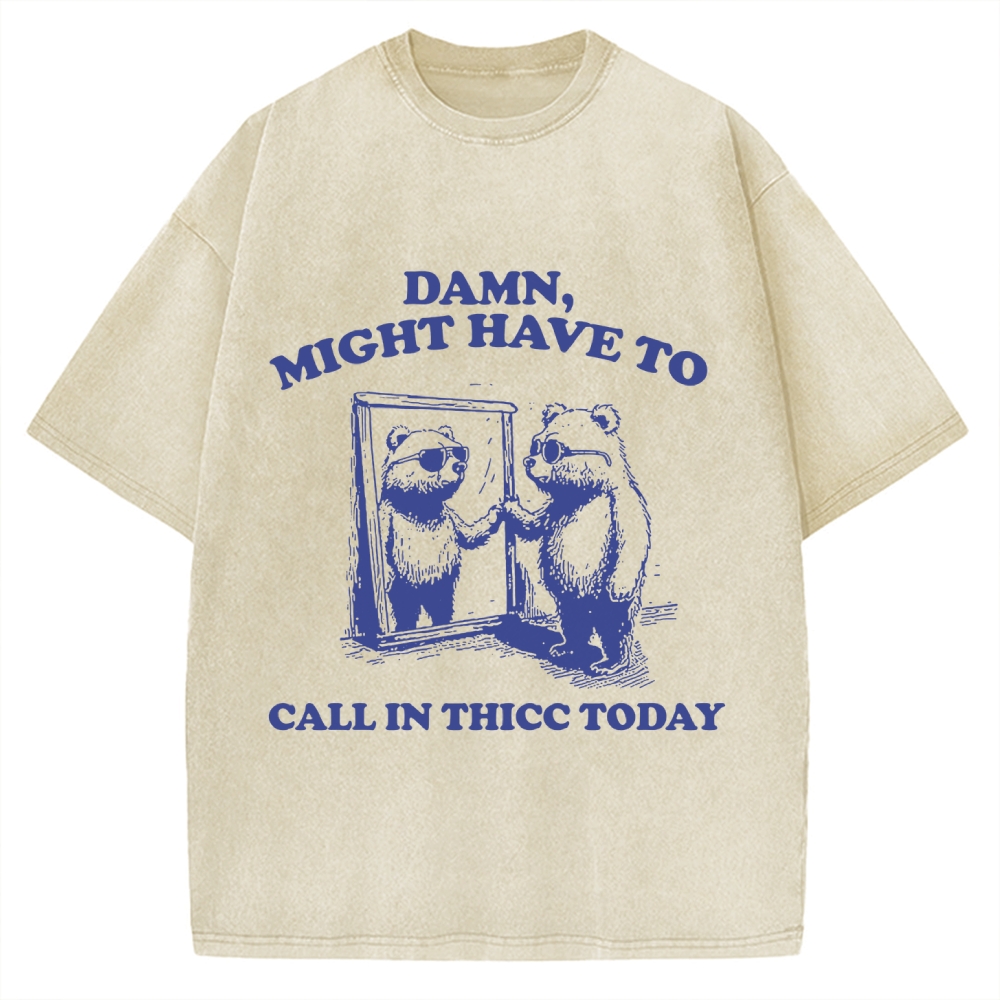 Damn Might have to call in thicc today Funny Bear Vintage Washed T-shirt