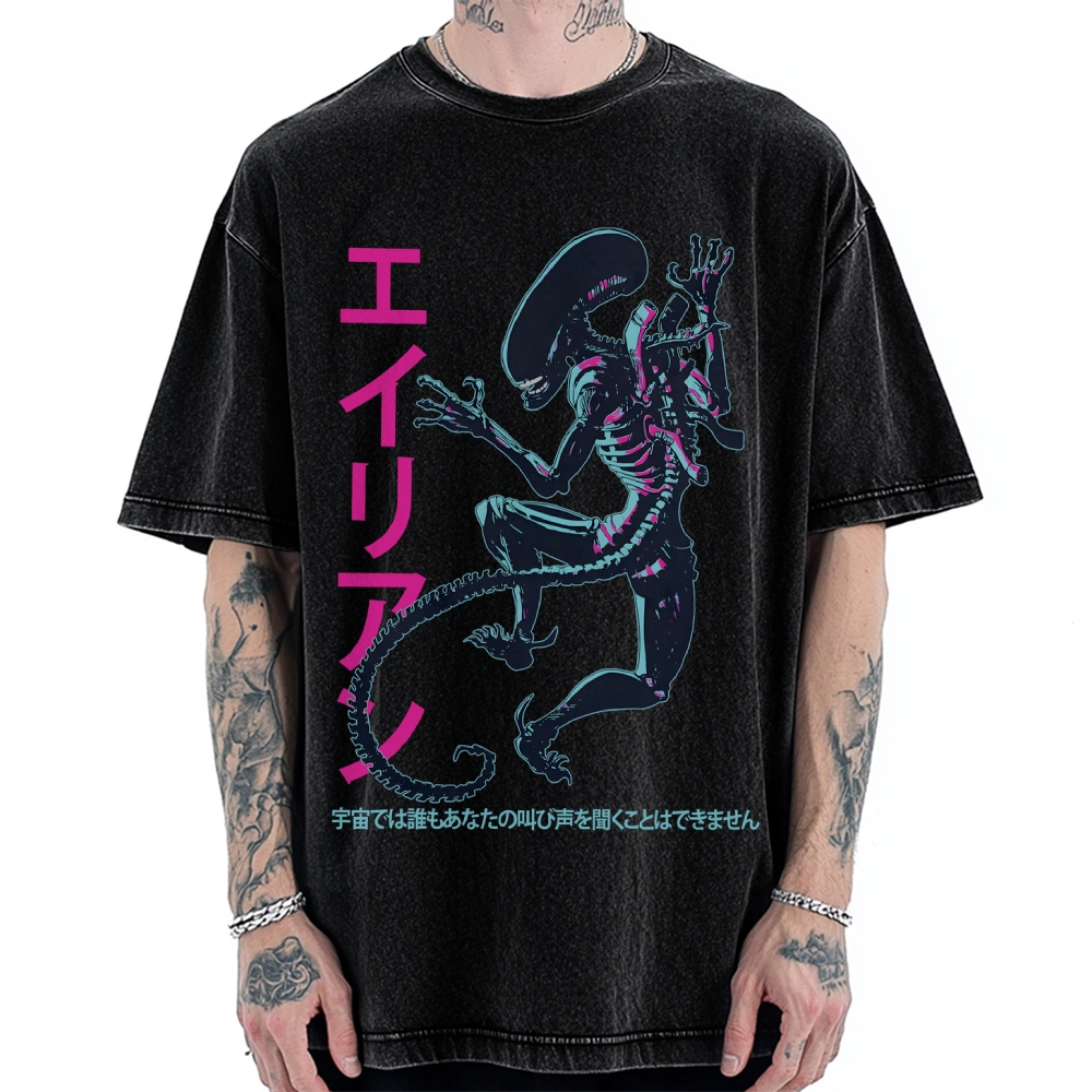 Cthulhu Monster Ukiyo-e Vintage Washed T-shirt
