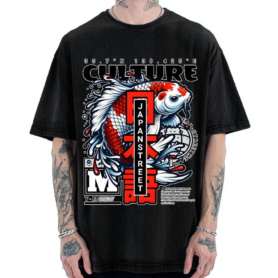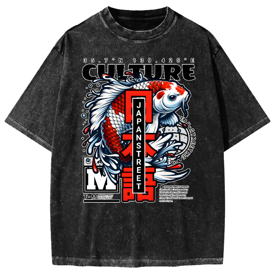 Yin Yang The Great Wave Off Koi Fish Japanese Art Vintage Washed T-shirt