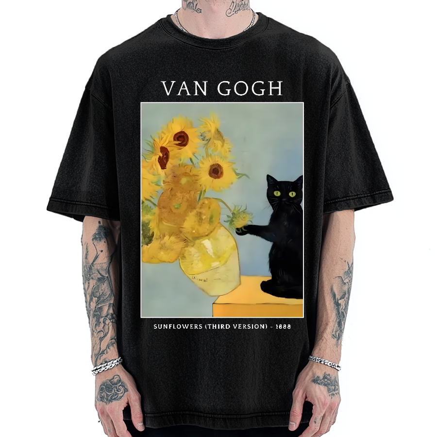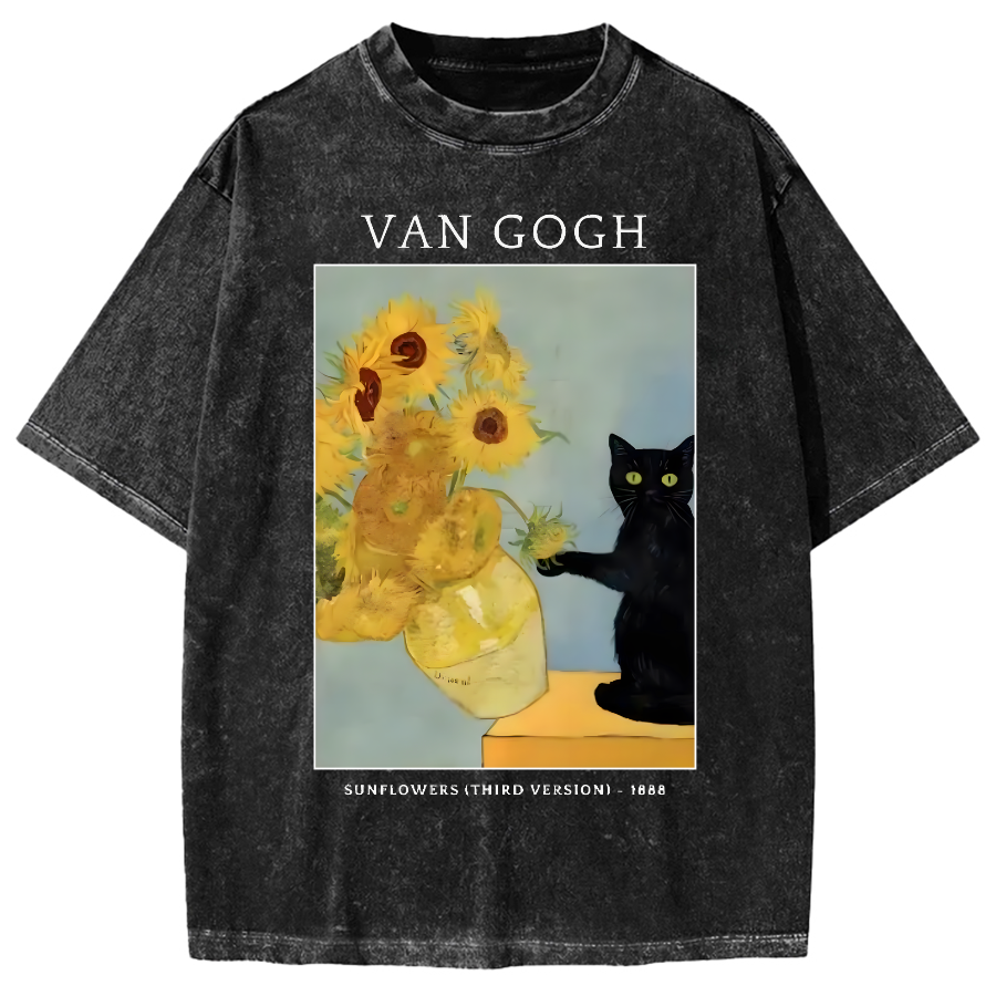 Black Cat And Sunflower Vintage Washed T-shirt