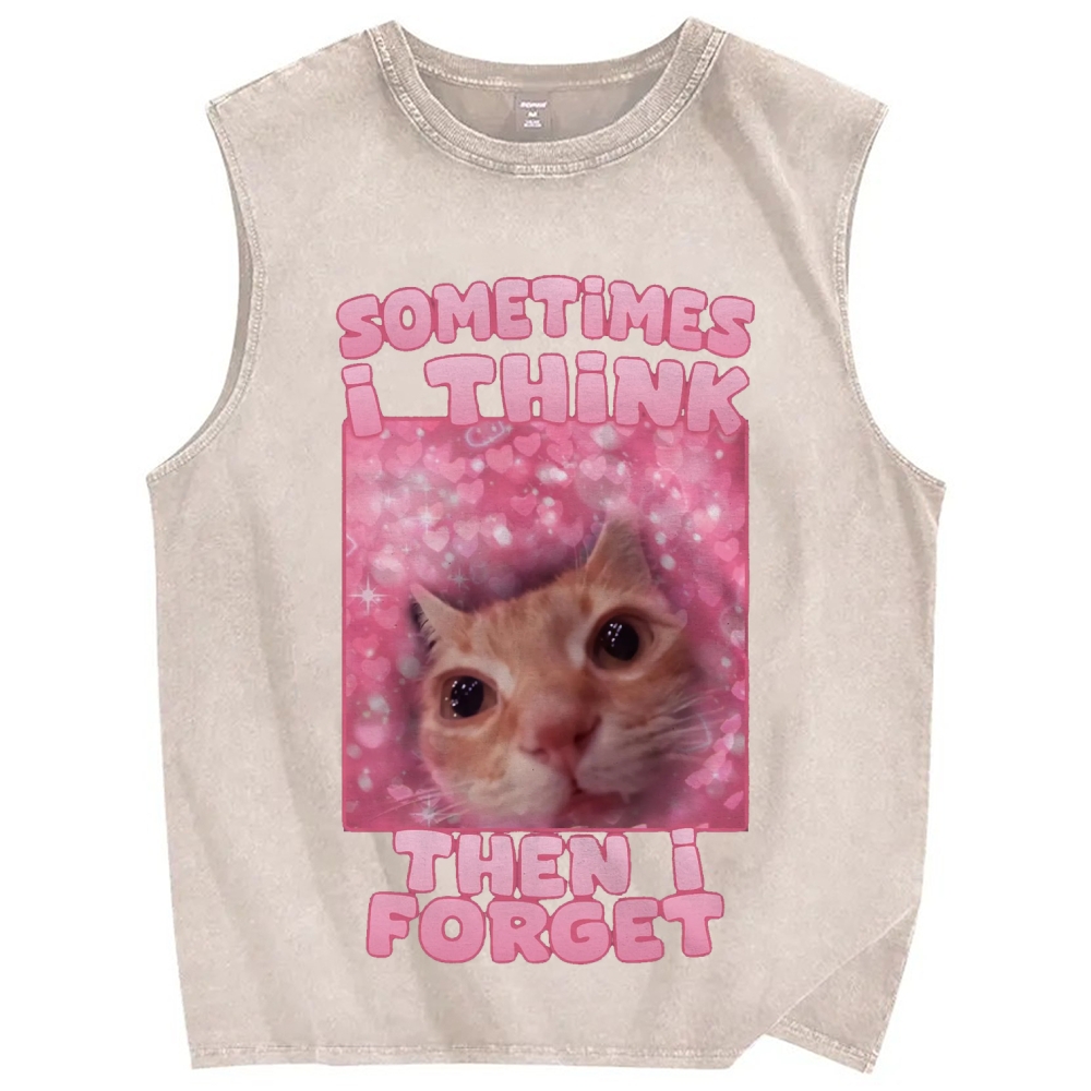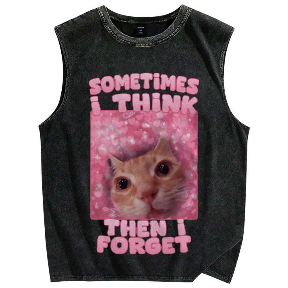 Sometimes i think then i forget Funny Cat Meme Vintage Distressed Washed Tank Top