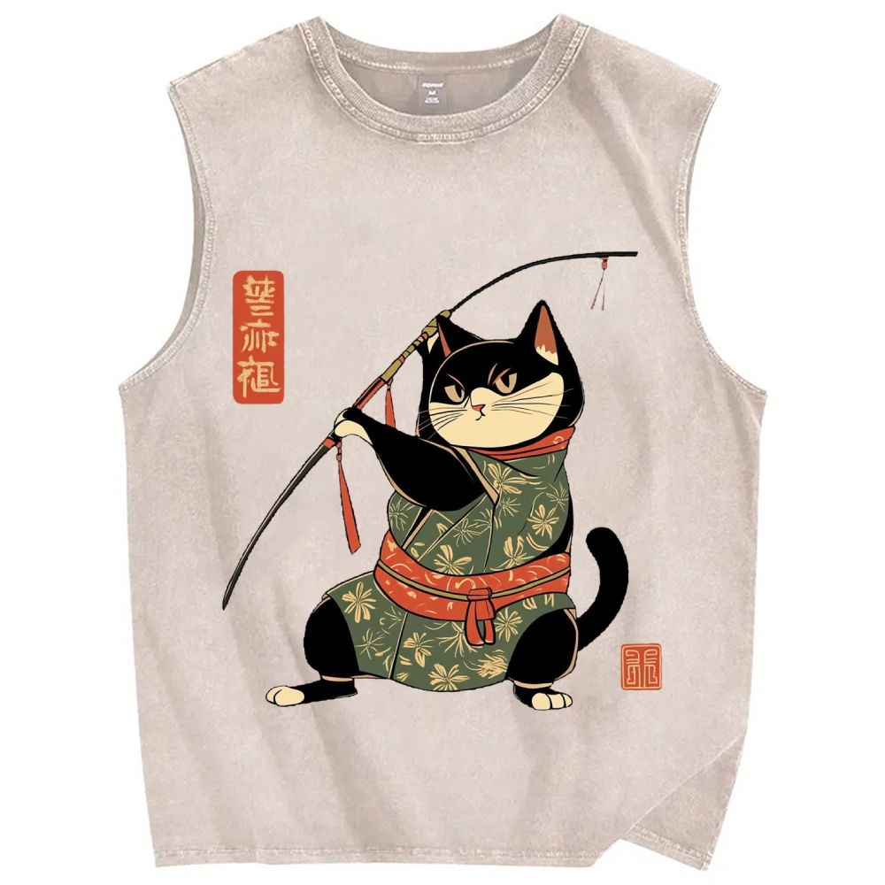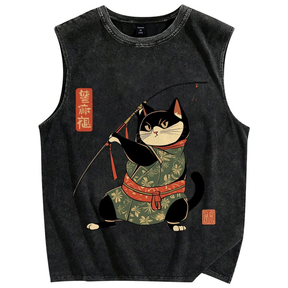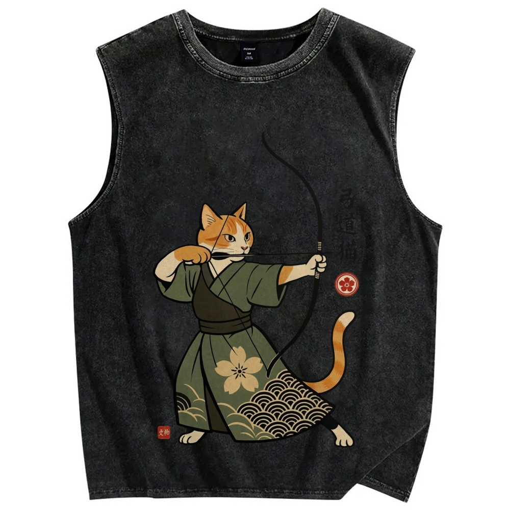 Cat Archer Japanese Traditional Costumes Vintage Distressed Washed Tank Top