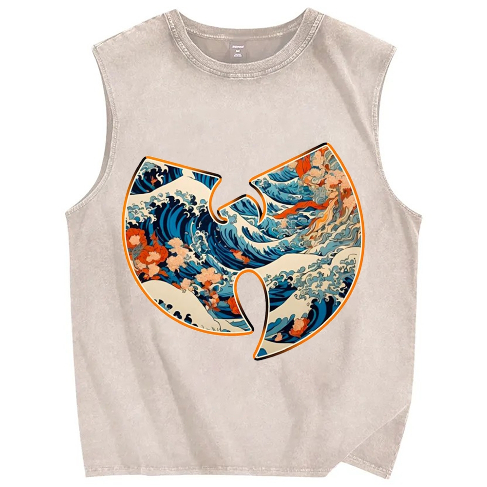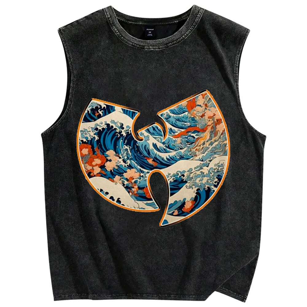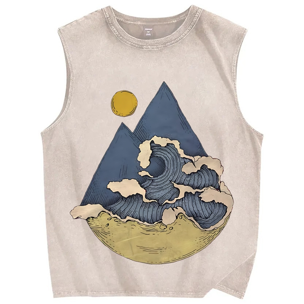 Japanese traditional pattern Mountains And Waves Simple Retro Vintage Distressed Washed Tank Top