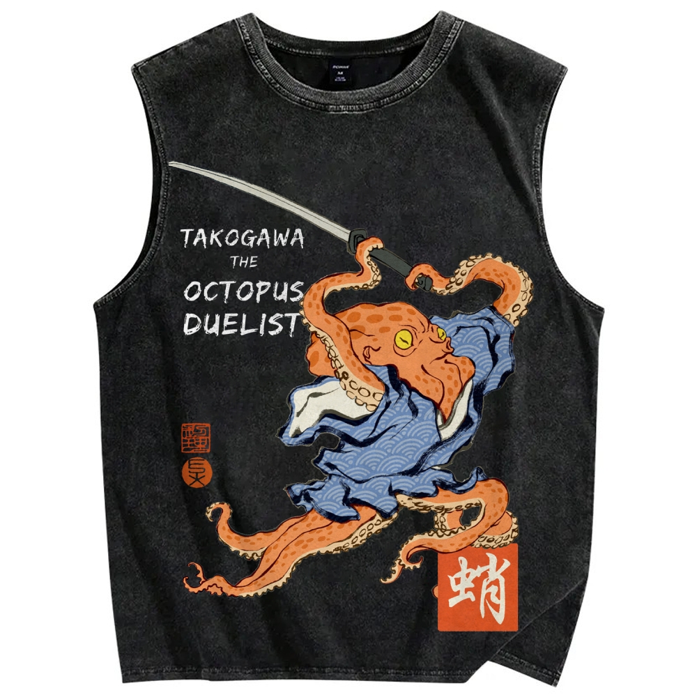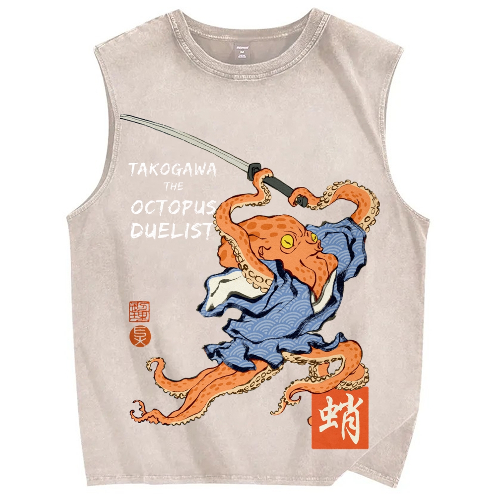 Samurai Octopus Vintage Distressed Washed Tank Top