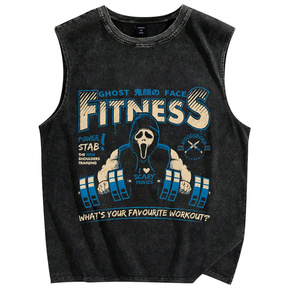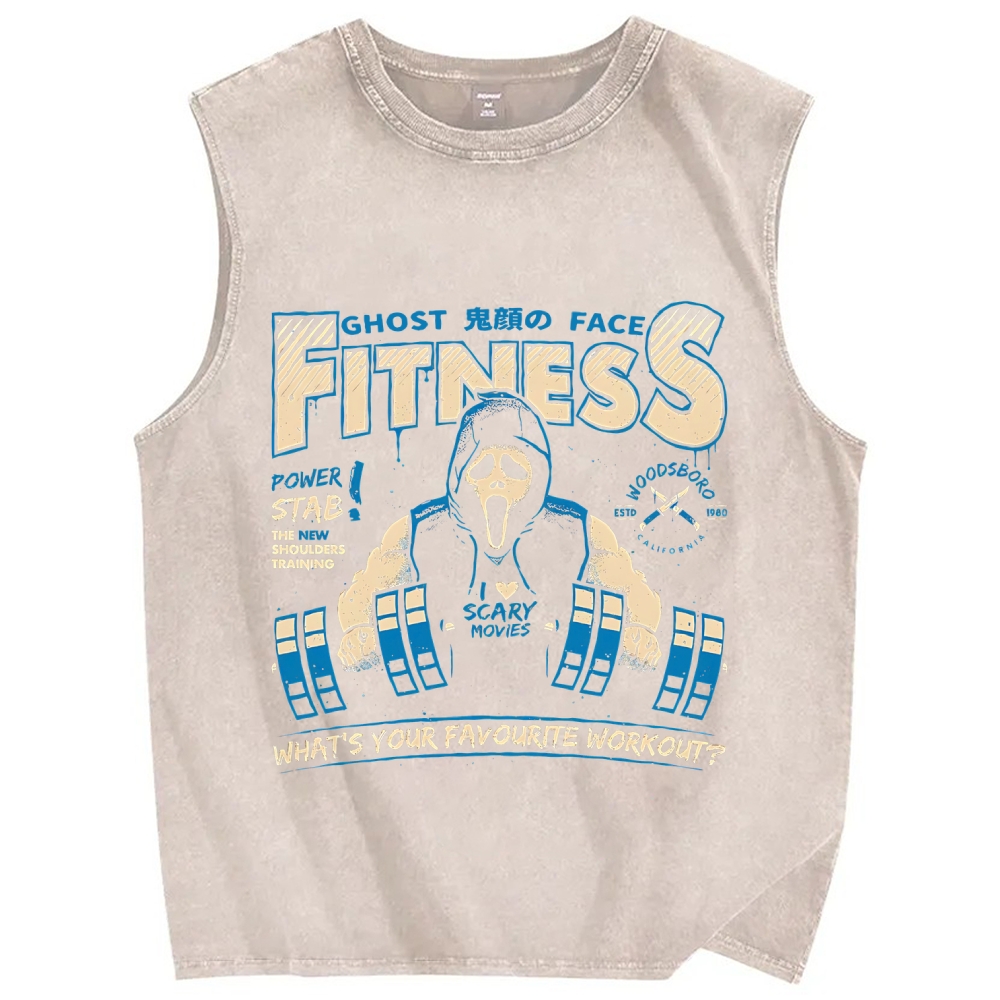 Ghost Face Fitness Club Vintage Distressed Washed Tank Top