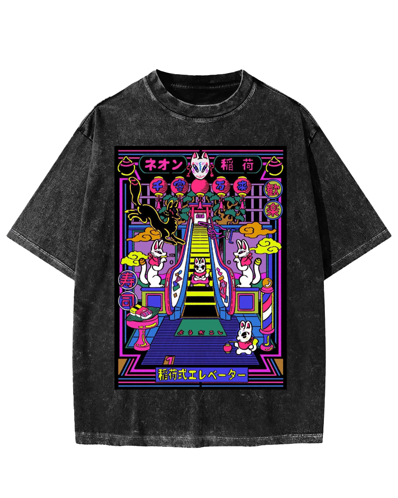 Ukiyo-e Fuji Mountain Cat Vintage Washed T-shirt