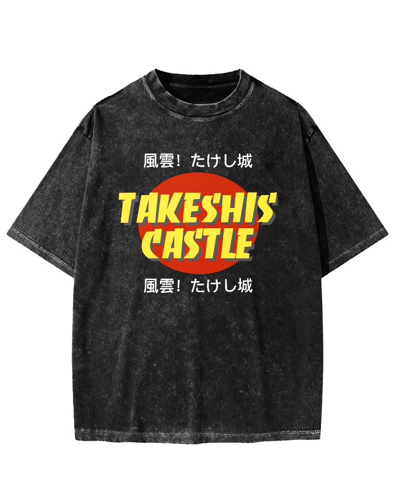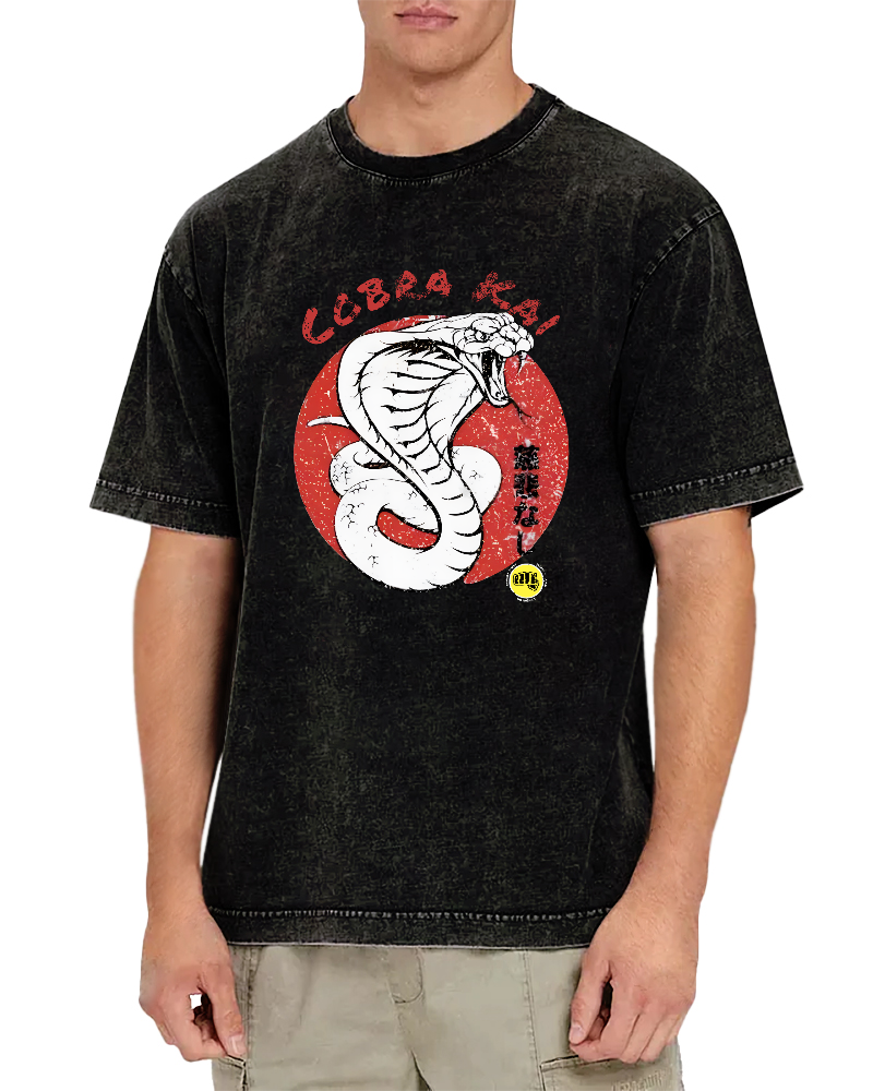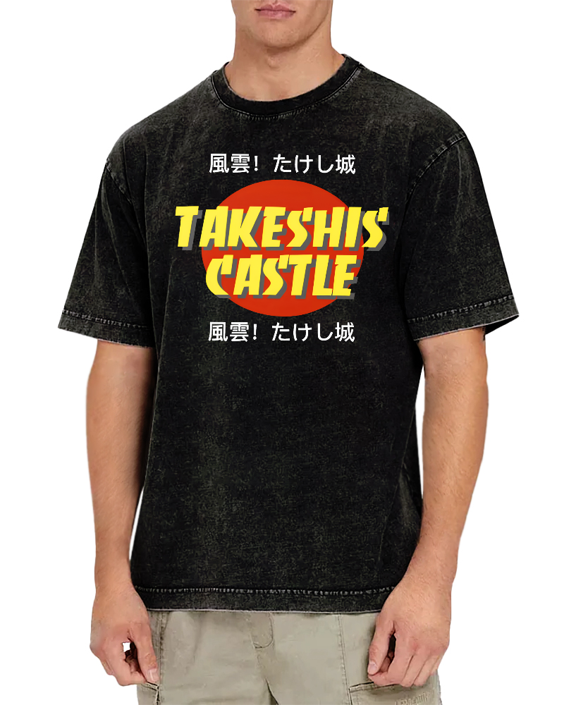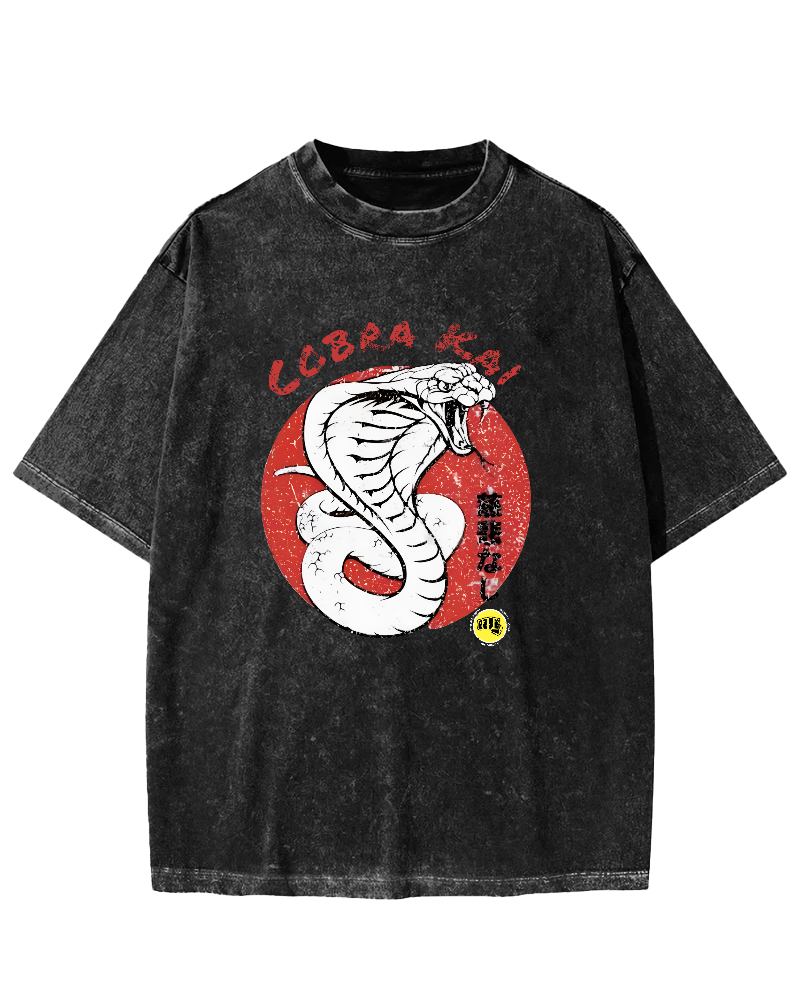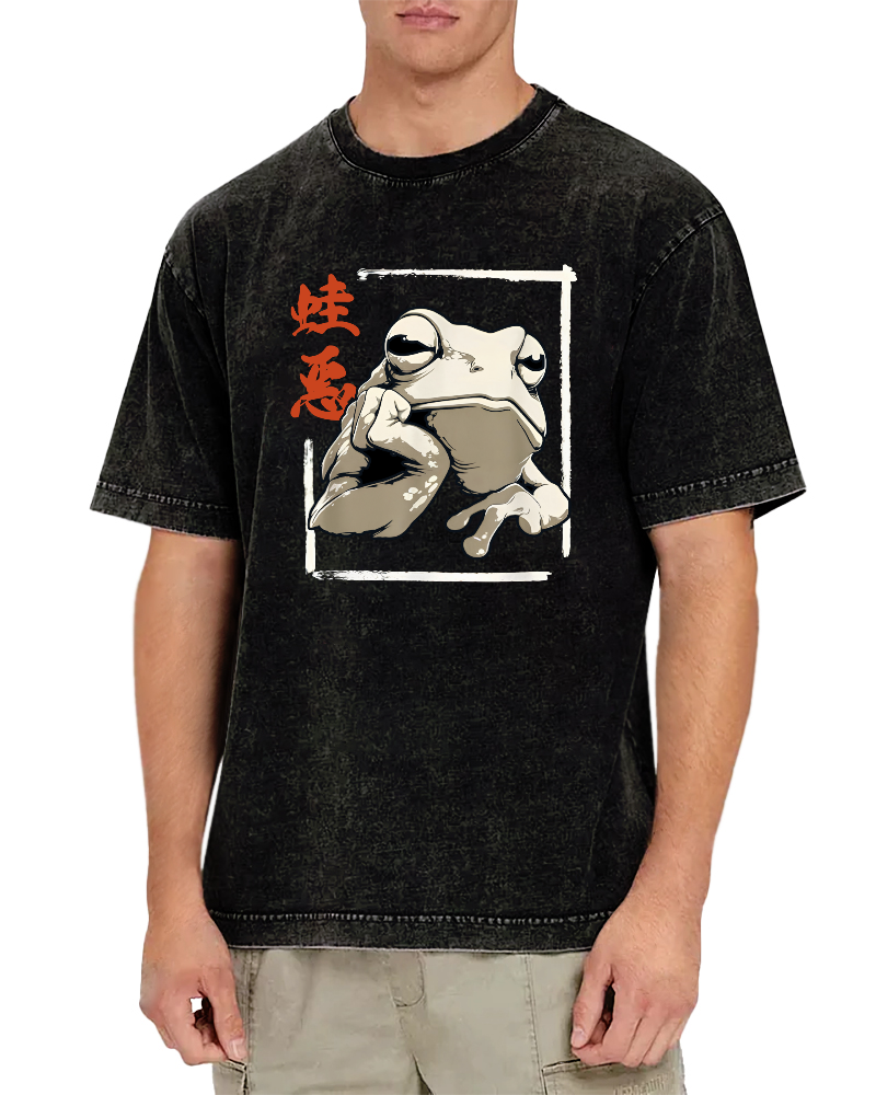 Fengyun Japanese style retro Chinese characters Vintage Washed T-shirt