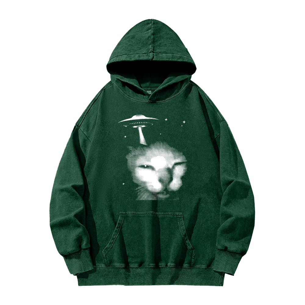 Alien Silly Cat Meme Vintage Washed Hoodie