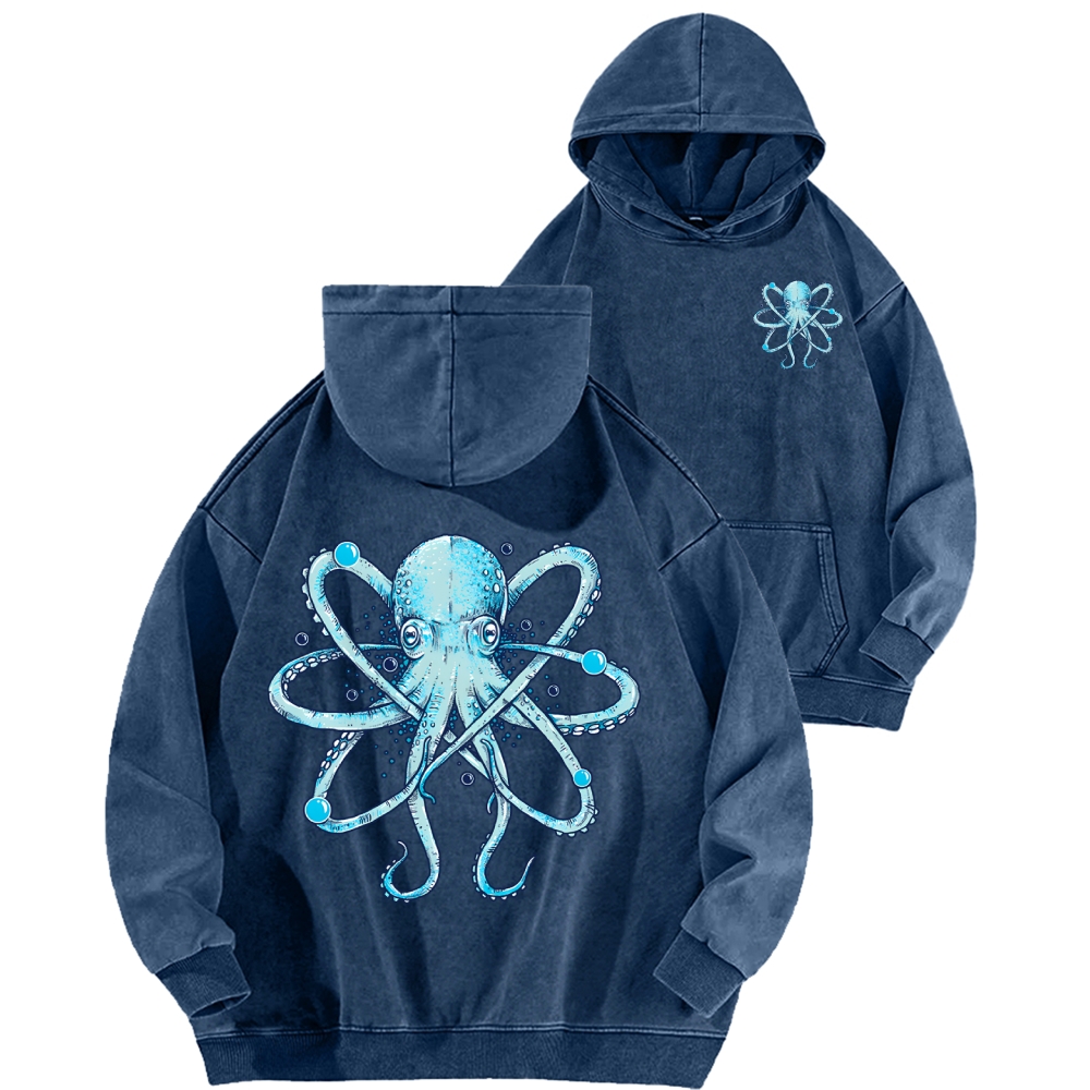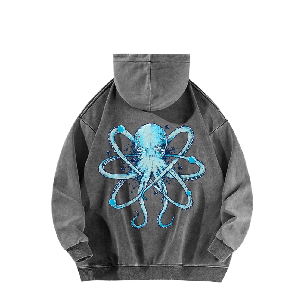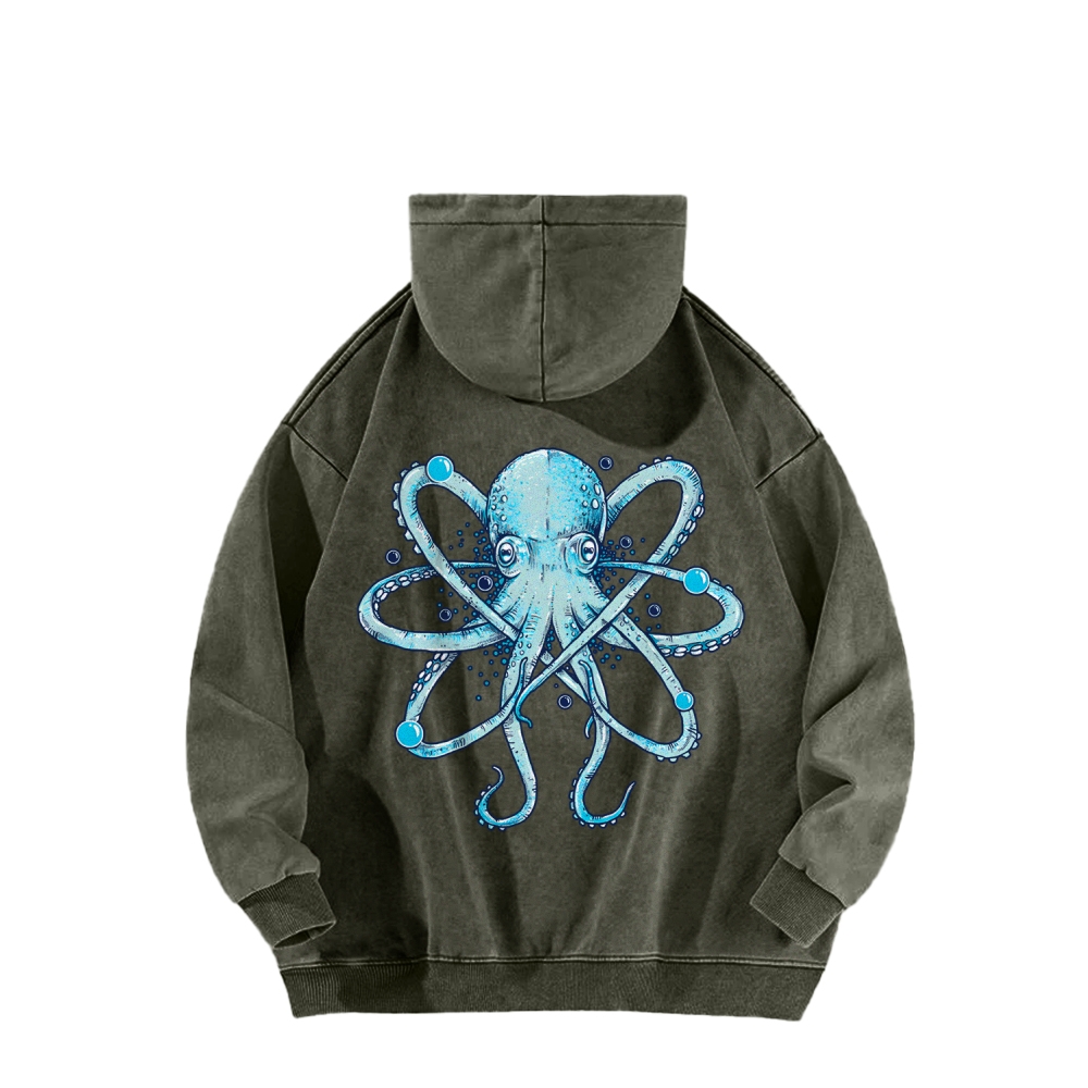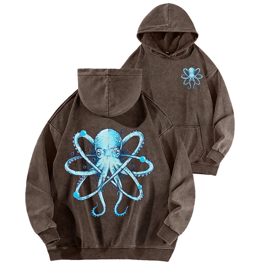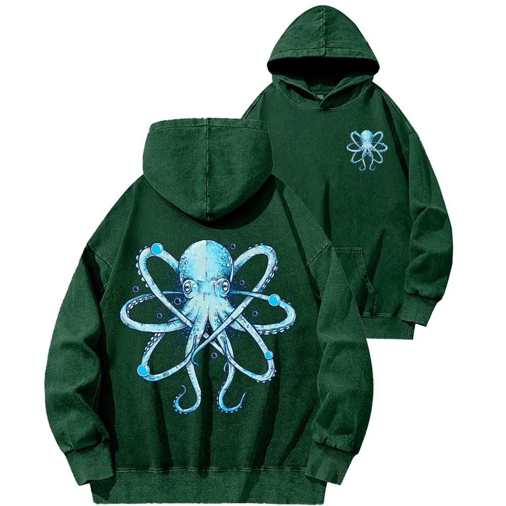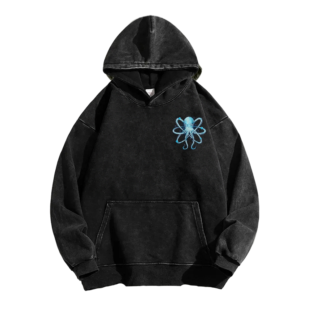 Atomic Octopus Front And Back Printing Vintage Washed Hoodie