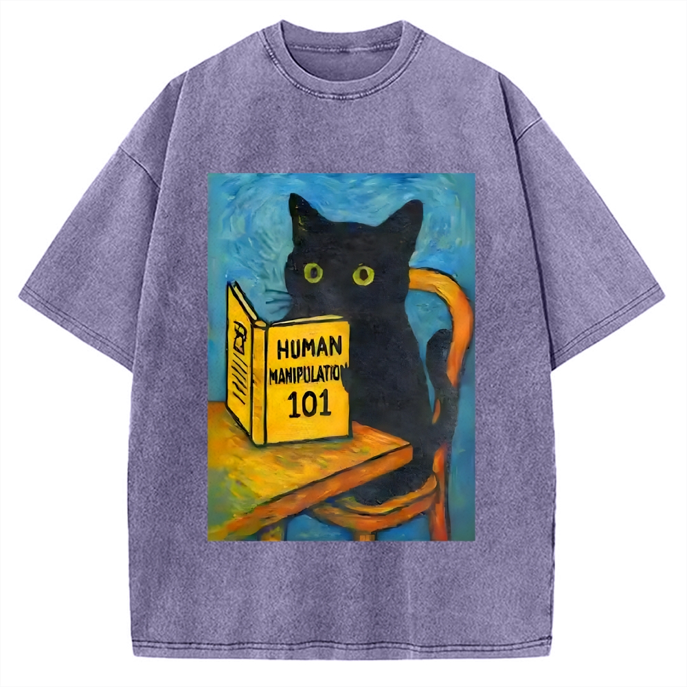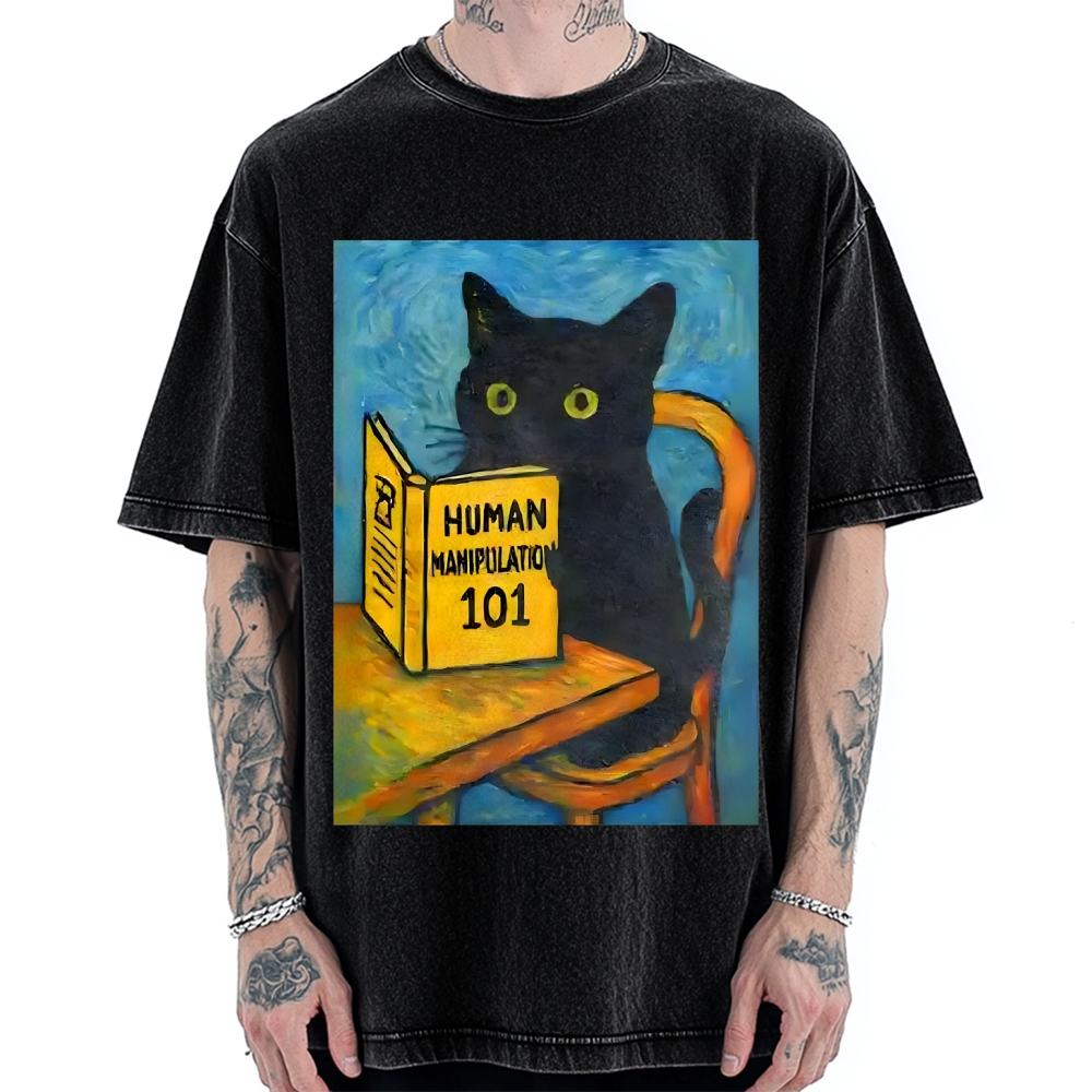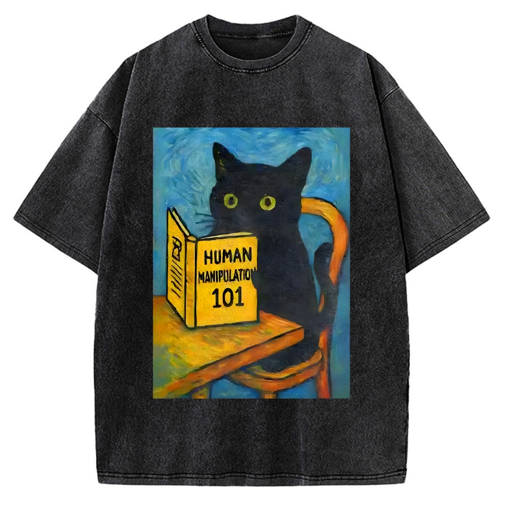 Black Cat Reading Funny Vintage Washed T-shirt
