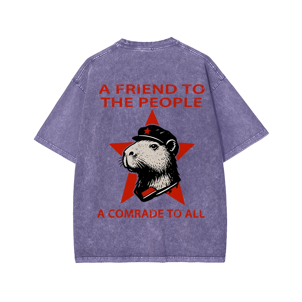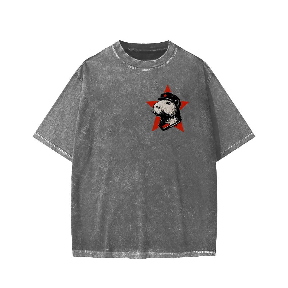 Capibalism Funny Front And Back Printing Washed T-shirt