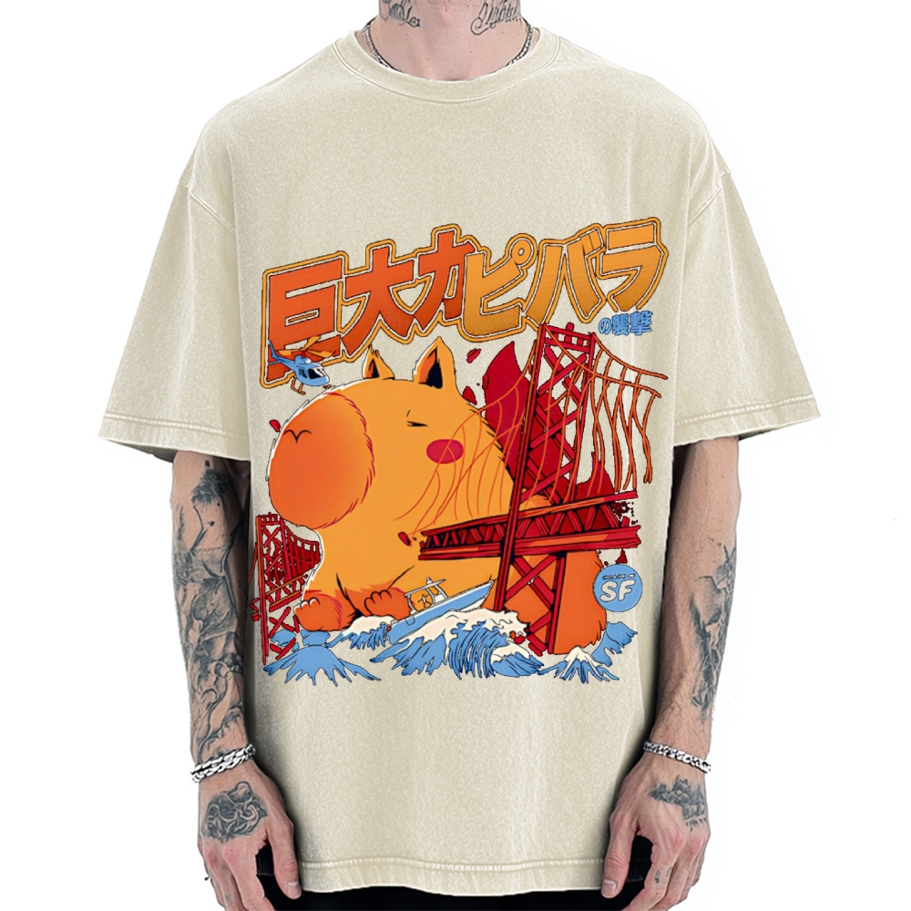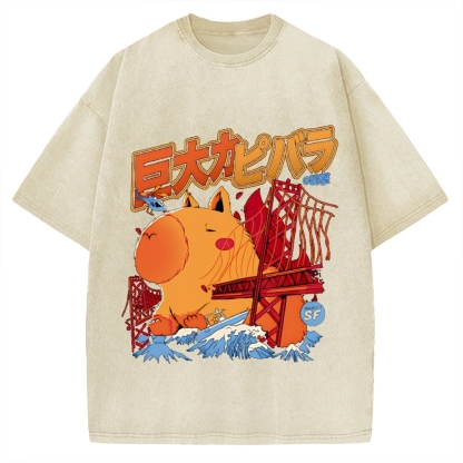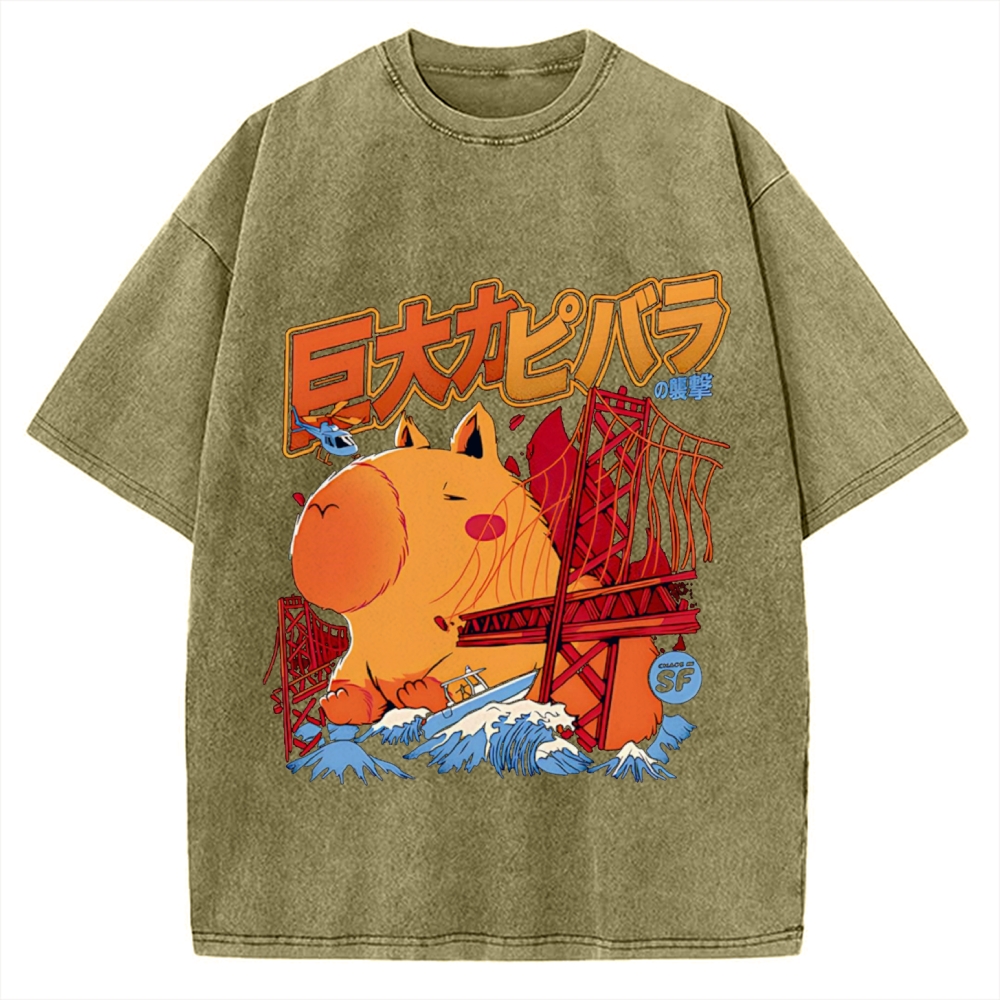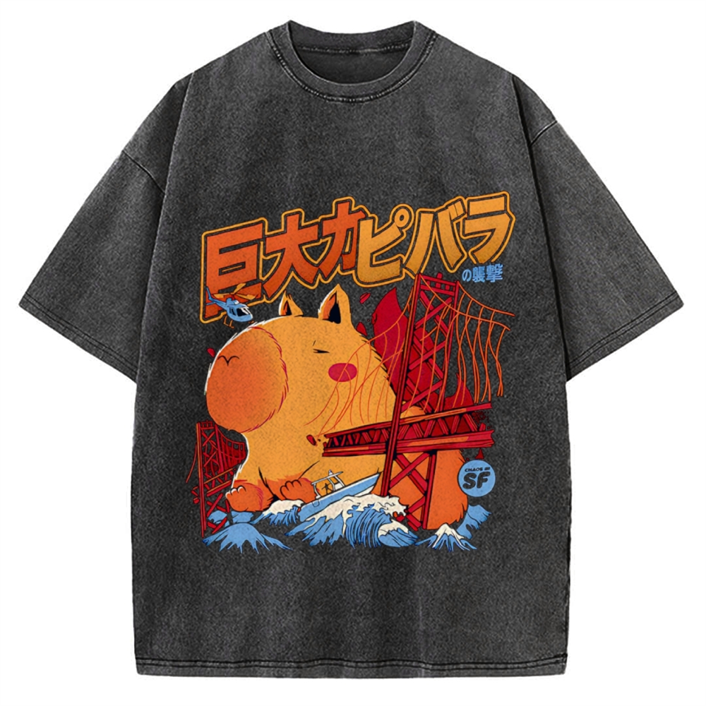 Capybara Monster attack Vintage Washed T-shirt