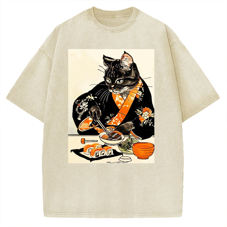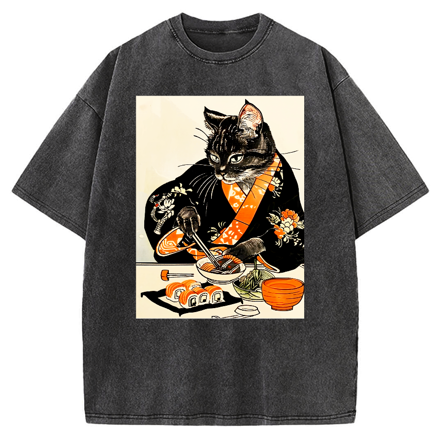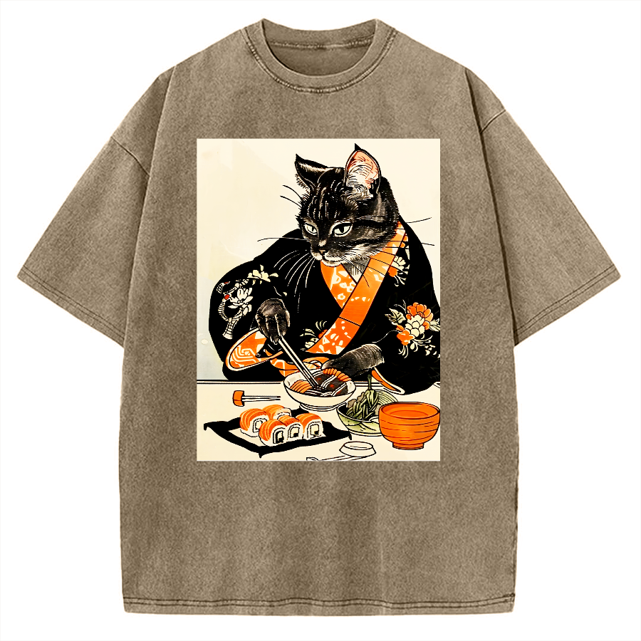 Cat Cut Sushi Vintage Washed T-shirt