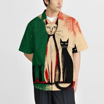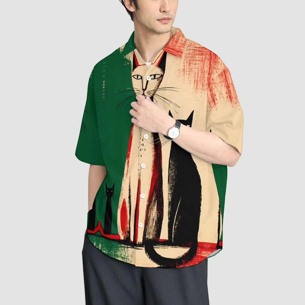 Cat Print Button-up Shirt