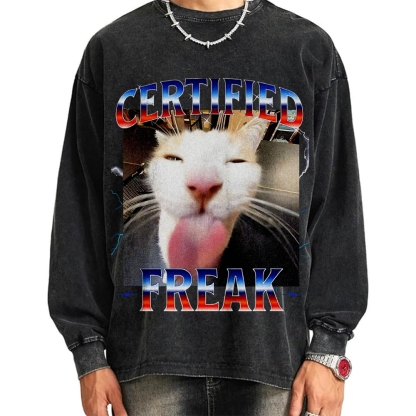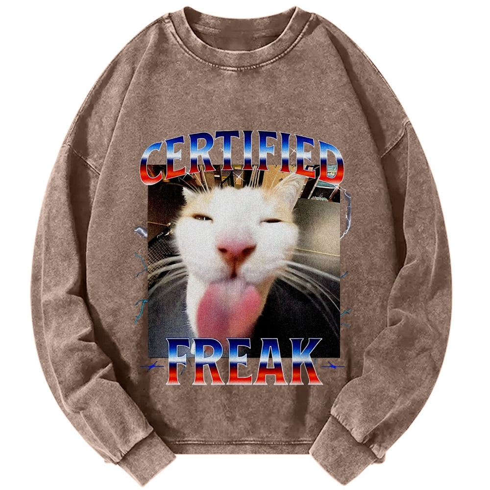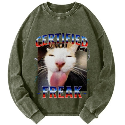 Certified Freak Funny Cat Meme Vintage Washed Sweatshirts
