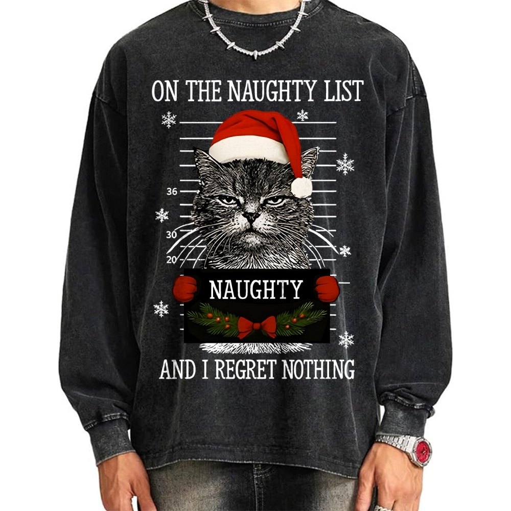 Christmas Naughty Cat Vintage Washed Sweatshirts