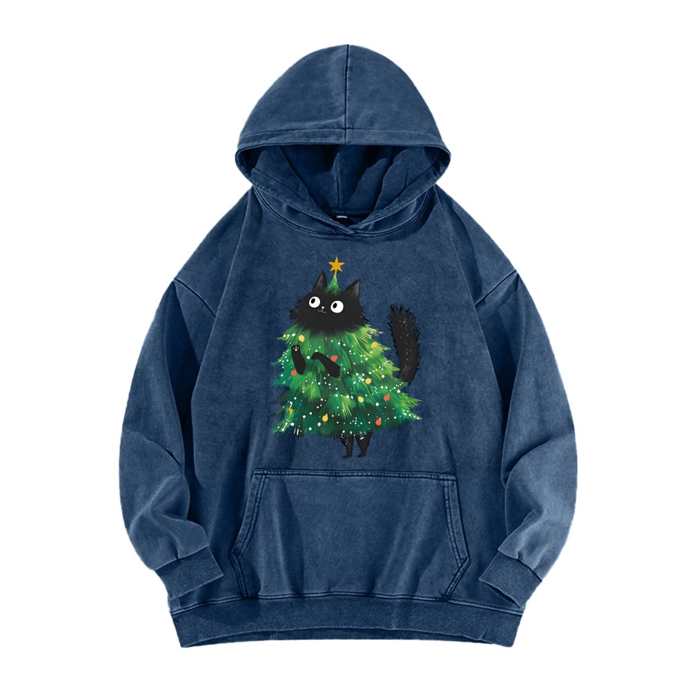 Christmas Tree Cat Japan Vintage Washed Hoodie